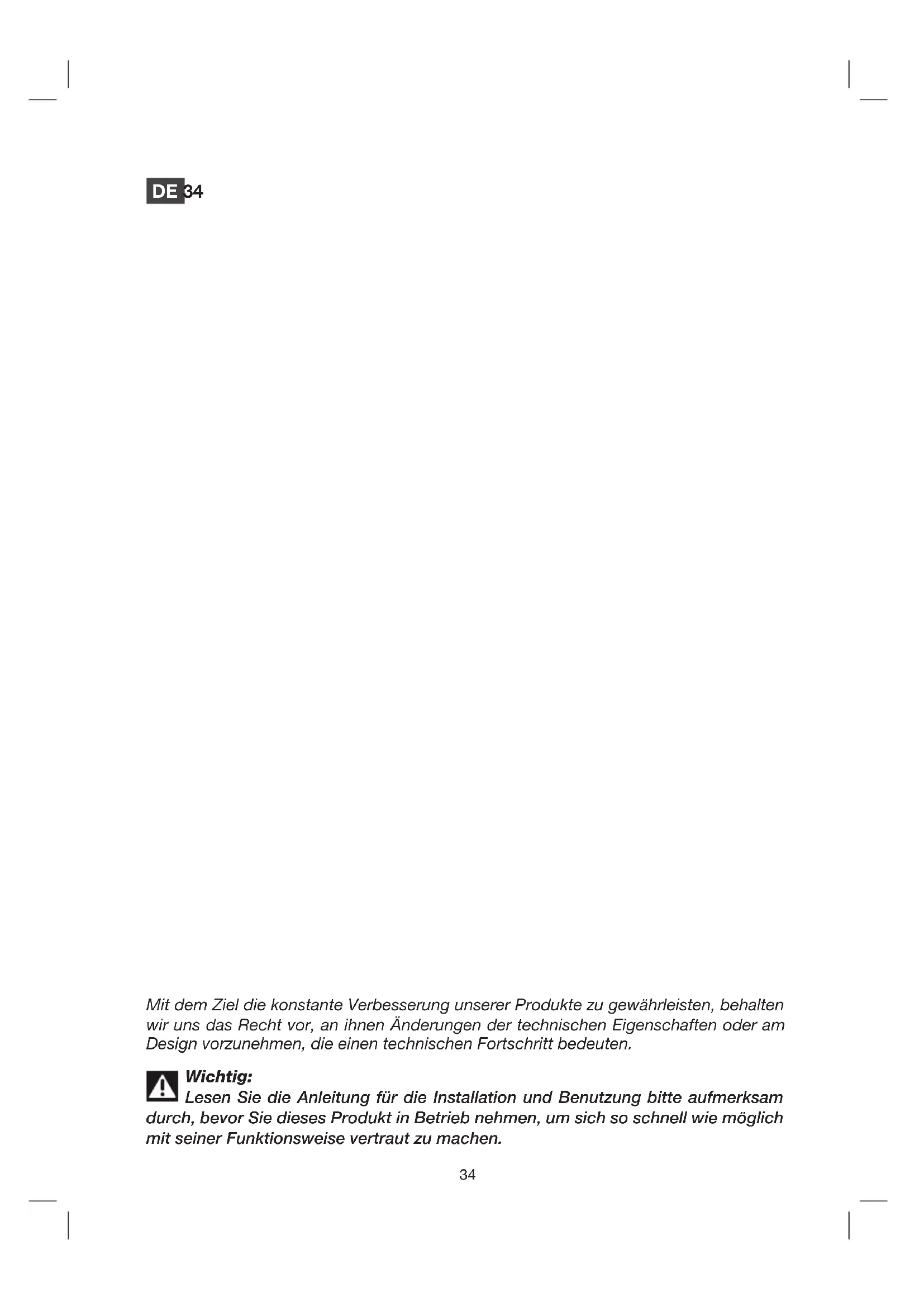Any maintenance on your equipment should be undertaken by : — either your dealer, — or another quali ed mechanic who is an authorized agent for the brand appliances. When making an appointment, state the full reference of your equipment (model, type and serial number). This information appears on the manufacturer’s nameplate attached to your equipment.34 DE 34 Mit dem Ziel die konstante Verbesserung unserer Produkte zu gewährleisten, behalten wir uns das Recht vor, an ihnen Änderungen der technischen Eigenschaften oder am Design vorzunehmen, die einen technischen Fortschritt bedeuten. Wichtig: Lesen Sie die Anleitung für die Installation und Benutzung bitte aufmerksam durch, bevor Sie dieses Produkt in Betrieb nehmen, um sich so schnell wie möglich mit seiner Funktionsweise vertraut zu machen.35 DEINHALTSVERZEICHNIS