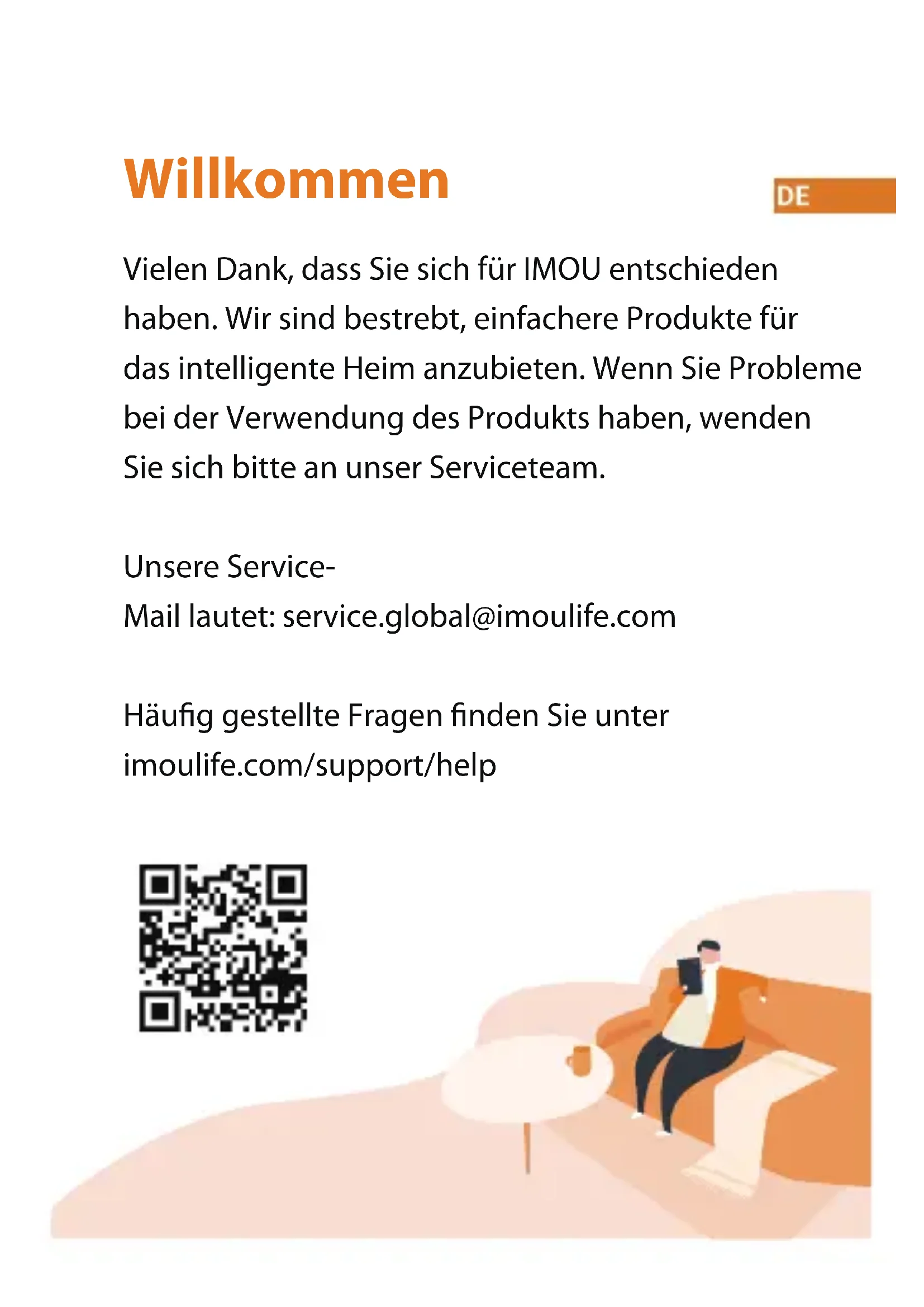 - This doorbell includes an Auto Mechanical IR Cut Filter. When the camera changes between Day/Night viewing modes, an audible clicking noise may be heard from the doorbell. This clicking is normal, and indicates that the camera lter is working.Doorbell Wired - DB11 Kurzanleitung www.imoulife.comWillkommen Vielen Dank, dass Sie sich für IMOU entschieden haben. Wir sind bestrebt, einfachere Produkte für das intelligente Heim anzubieten. Wenn Sie Probleme bei der Verwendung des Produkts haben, wenden Sie sich bitte an unser Serviceteam. Unsere Service- Mail lautet: service.global@imoulife.com Häug gestellte Fragen nden Sie unter imoulife.com/support/helpPackungsinhalt Kurzanleitung ×1 Gong- Kit x1 Schraubendreher x1 ChimeKit Video- Türklingel x1 Schrauben und Dübel ×1 Türrahmen- Schrauben x3 Stromversorgungs- Anschlussschrauben x2 Kabelverbinder x3 Gong-Kabel x2Türklingelkabel x2Produktübersicht Frontblende Geräterückseite Frontblende Schraubloch PIR- Erkennung Kamera IR-LED Lautsprecher Klingelknopf Mikrofon LED Während der EinrichtungVerhalten Rotiert blau Leuchtet blau Blinkt blau Nach der Einrichtung Hotspot aktiv Einschalten Bereit zur Einrichtung Telefonieren Sprechen Netzwerk anormal MicroSD- Kartensteckplatz Rücksetztaste Stromanschluss1