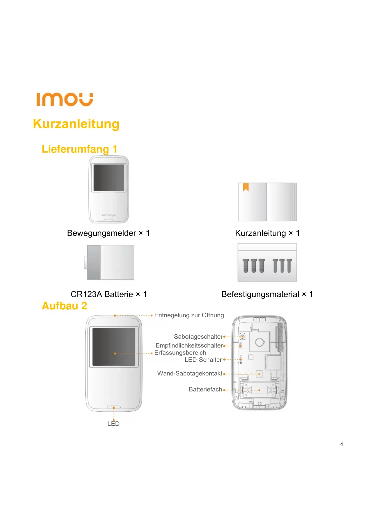 Finden Sie kostenlos die Bedienungsanleitung des Geräts Motion Detector IMOU als PDF.
