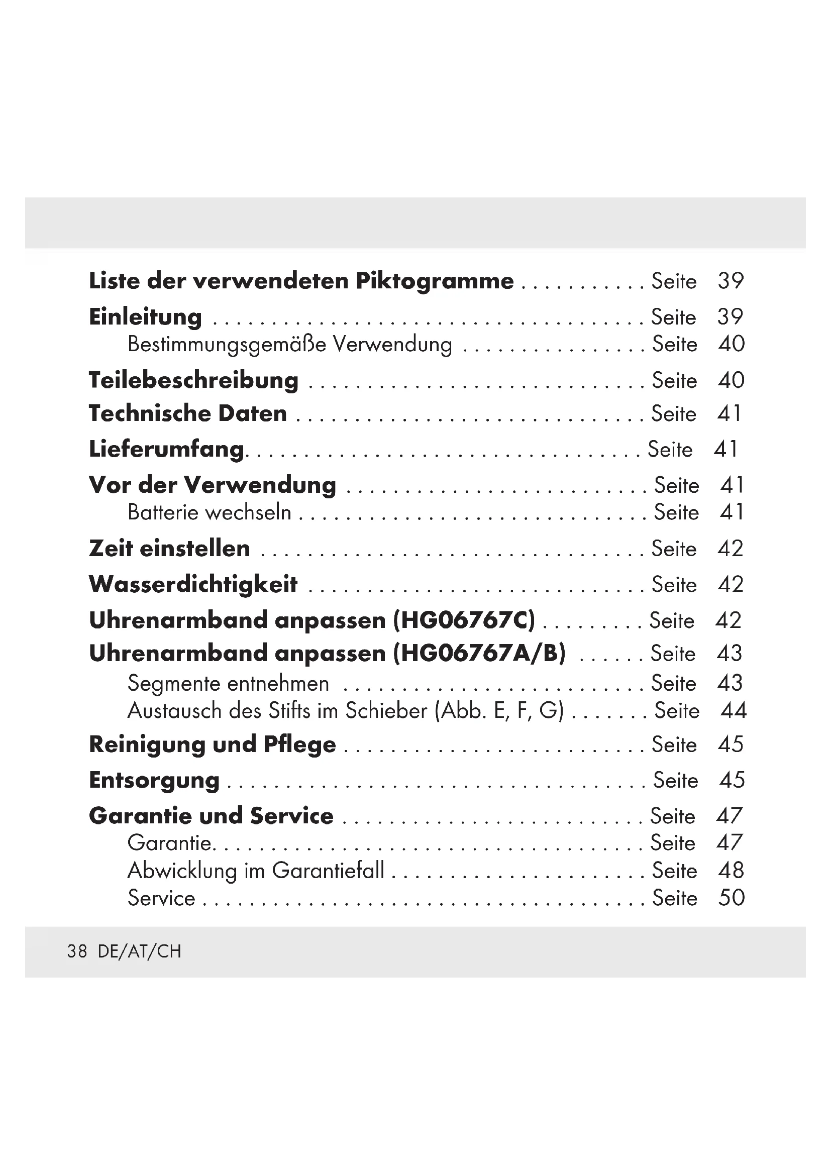 Uhrenarmband anpassen (HG06767C) . . . . . . . . . . . . . . . . . . . . . . . . . . . . . . . . . . . . . . . . . . . . . . . . . . . . . . . . . . . . . . . . . . . . . . . . . . . . . . . .. 42