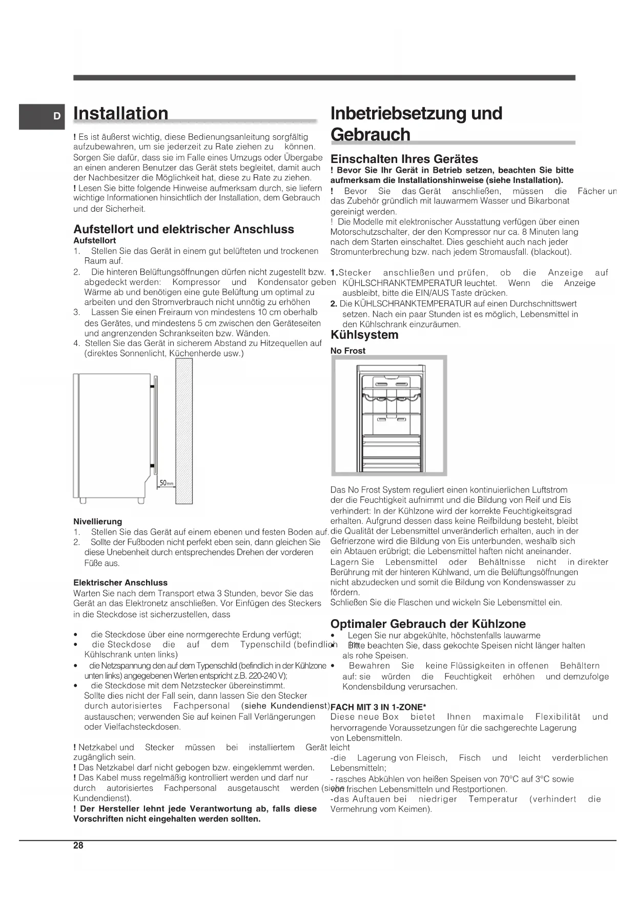 Installation ! Esistäußerstwichtig,dieseBedienungsanleitungsorgfältig aufzubewahren,umsiejederzeitzuRateziehenzu können. SorgenSiedafür,dasssieimFalleeinesUmzugsoderÜbergabe aneinenanderenBenutzerdasGerätstetsbegleitet,damitauch derNachbesitzerdieMöglichkeithat,diesezuRatezuziehen. ! LesenSiebittefolgendeHinweiseaufmerksamdurch,sieliefern wichtigeInformationenhinsichtlichderInstallation,demGebrauch undderSicherheit. Aufstellort und elektrischer Anschluss Aufstellort