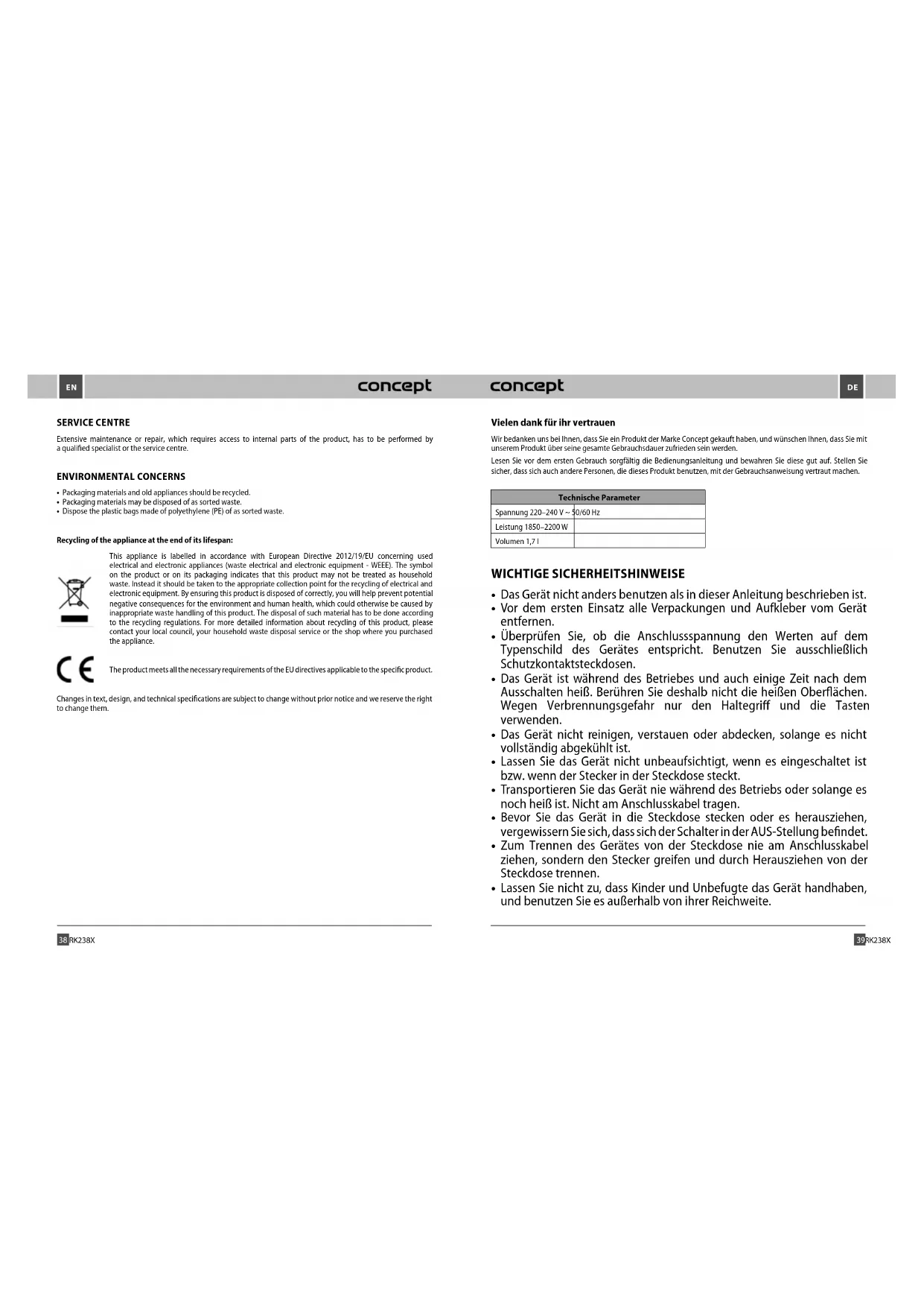 BEDIENUNGSANLEITUNG RK2383 Concept