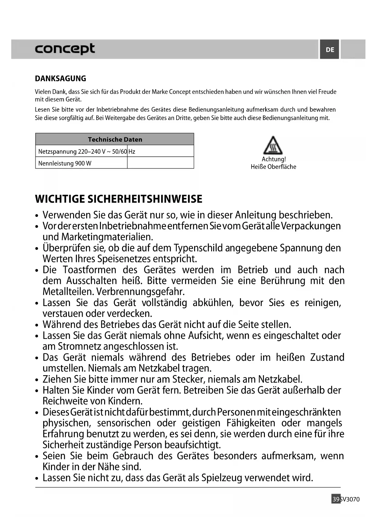 BEDIENUNGSANLEITUNG SV3070 Concept