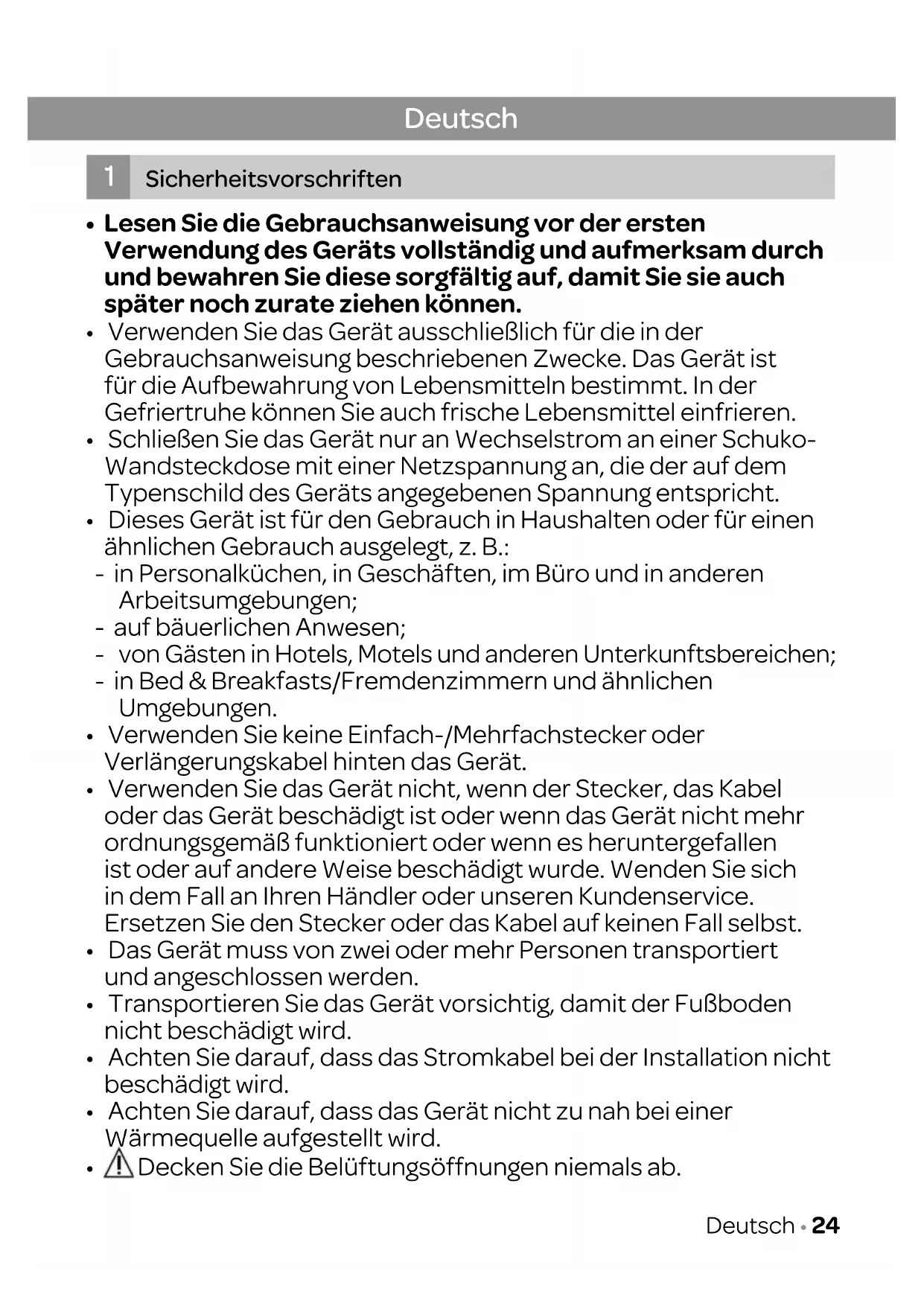 - Legen Sie die gefrorenen Produkte erst in die Gefriertruhe zurück, wenn diese wieder die richtige Temperatur erreicht hat. 33 • DeutschStörungen selbst beheben
