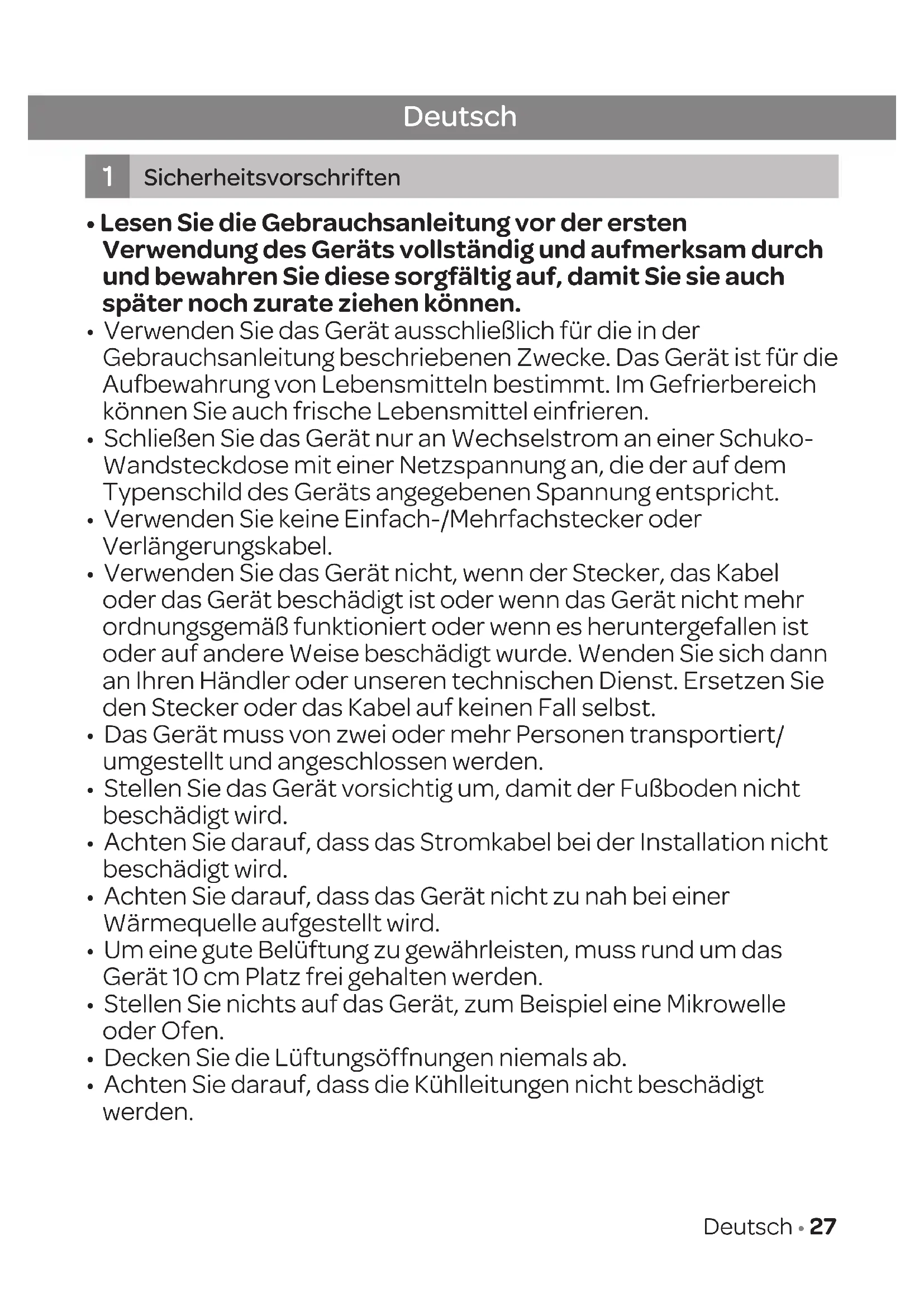 - Achten Sie darauf, dass die Kühlleitungen nicht beschädigt werden. Deutsch Sicherheitsvorschriften