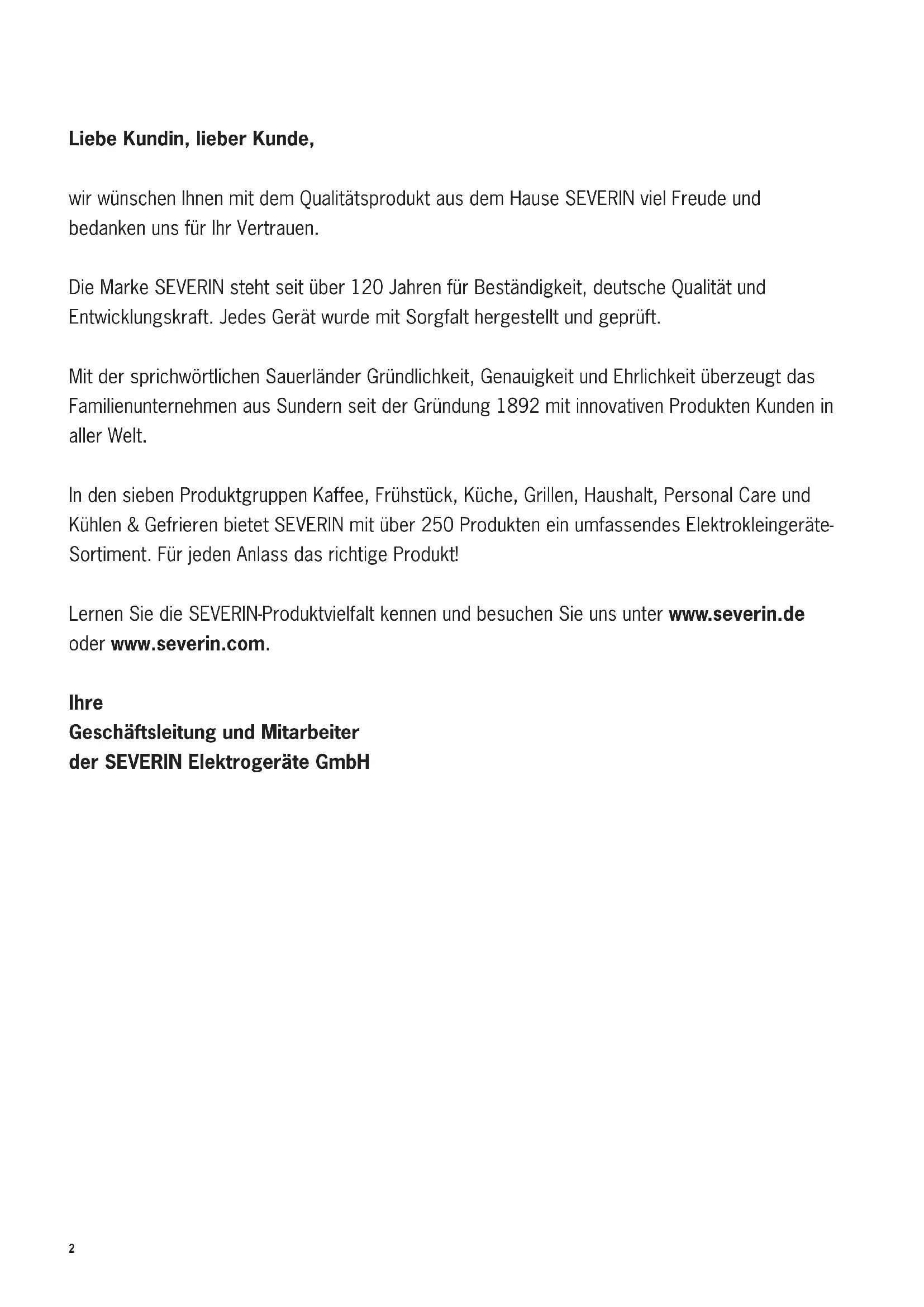 Das Gerät ist nicht für den gewerblichen Einsatz bestimmt, auch nicht für den Gebrauch im Catering und ähnlichem Großhandelseinsatz.