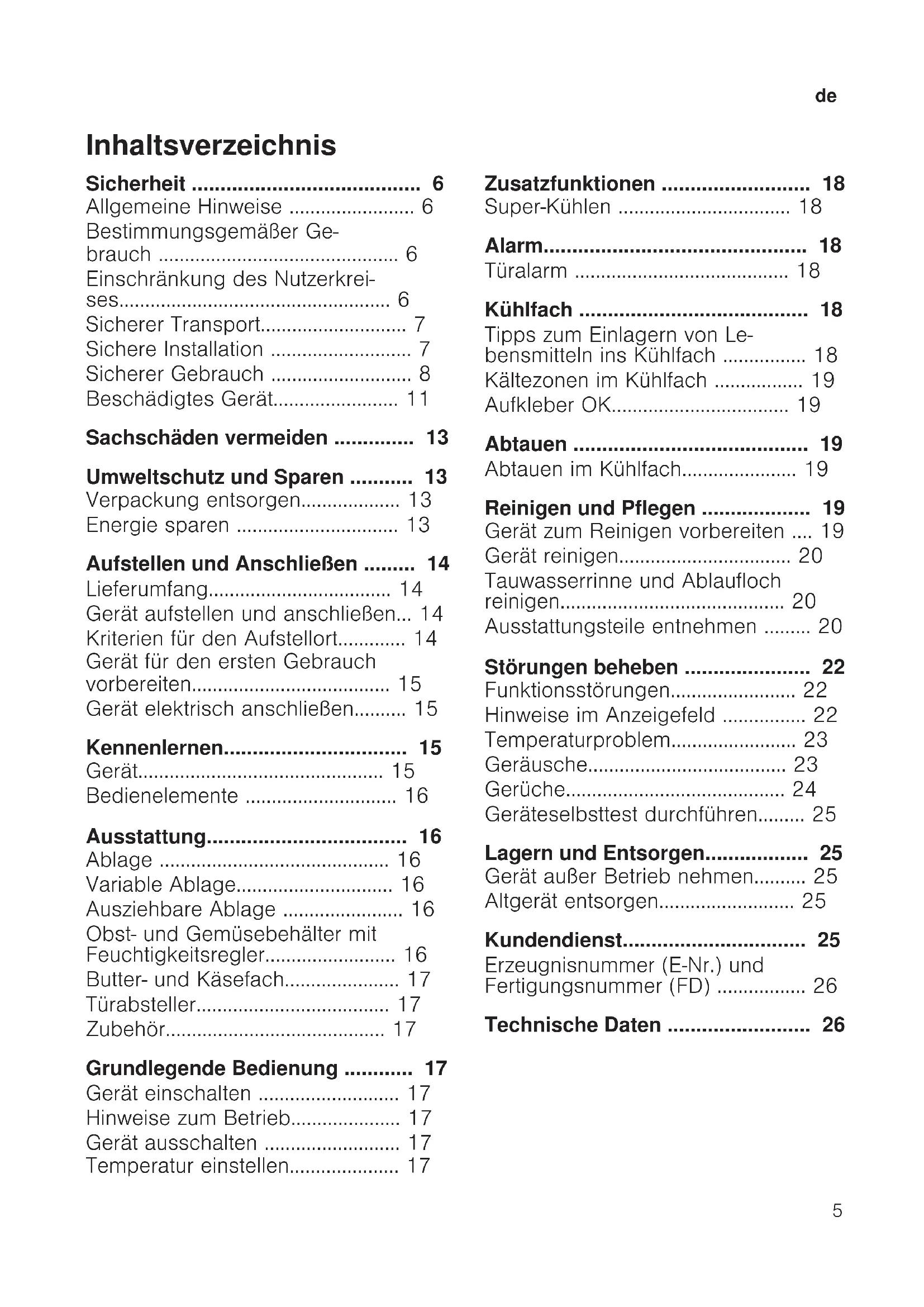 - Technische Daten de Sicherheit p. 26