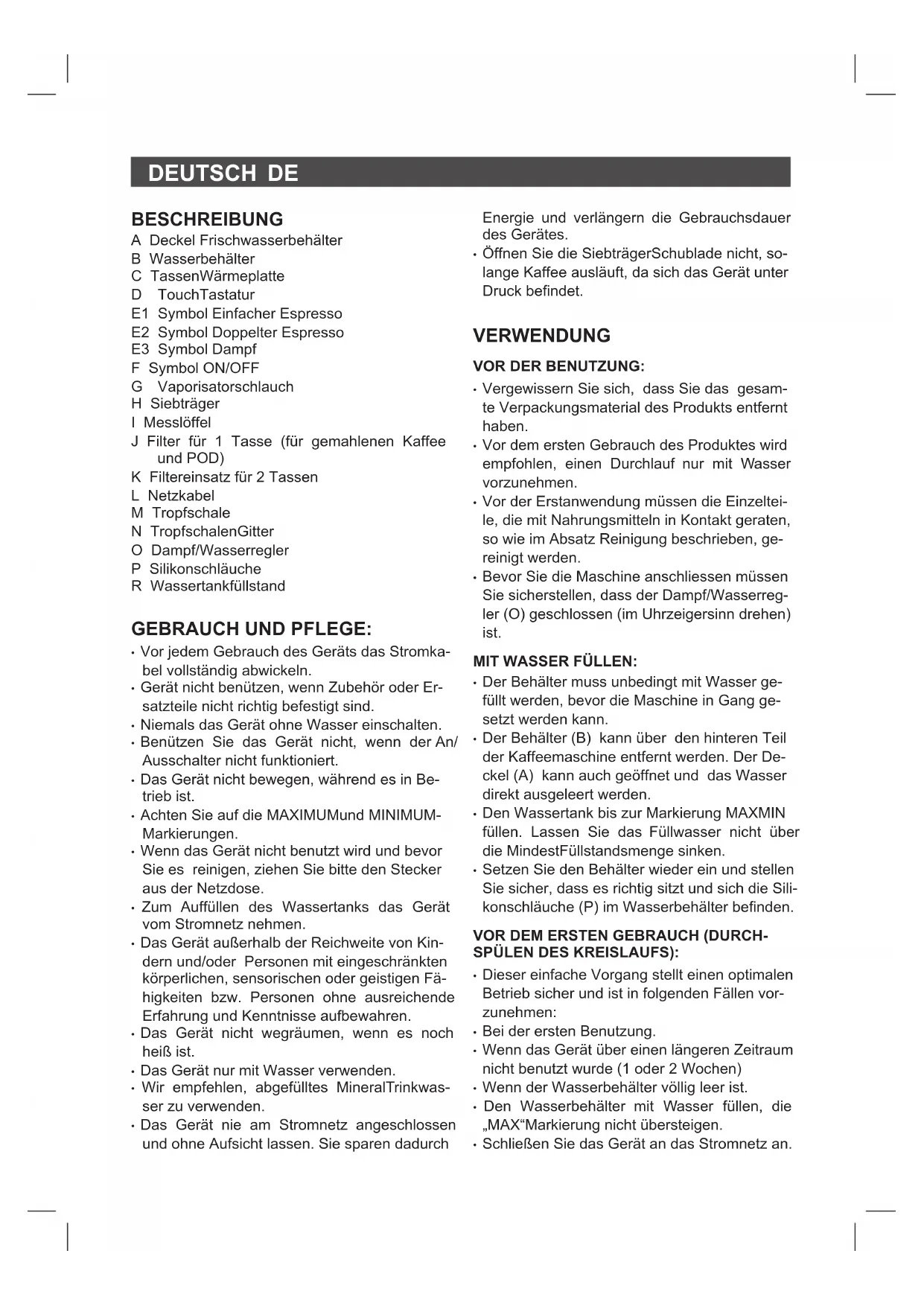 ESPRESSOMASCHINE GEBRAUCHSANLEITUNG