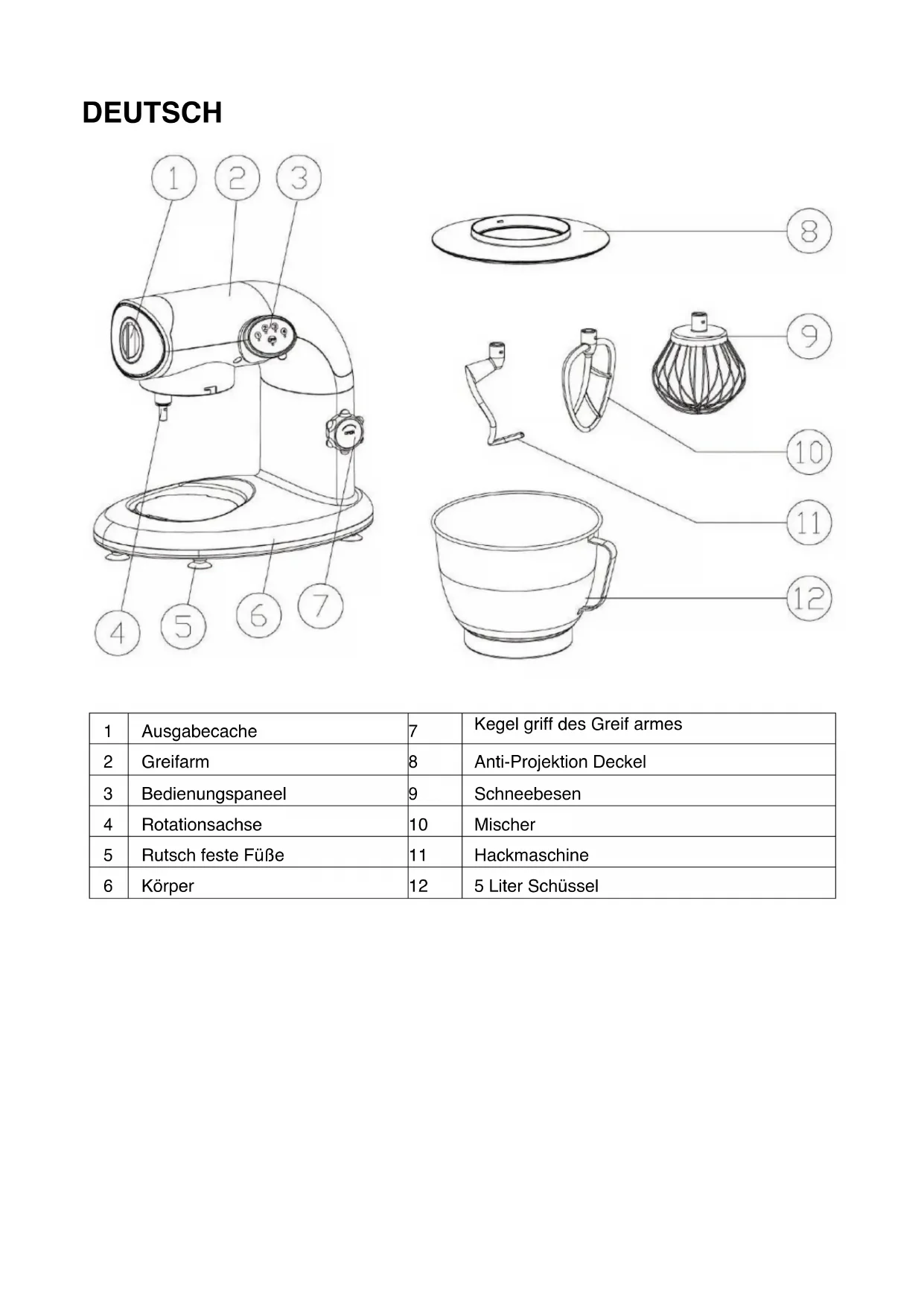 5 Liter SchüsselWICHTIGE VORSICHTHEIT MAßNAHMEN: Bei der Nutzung von Elektrogeräten, müssen immer folgende Vorsichtsmaßnahmen gefolgt warden, lesen Sie alle Instruktionen: