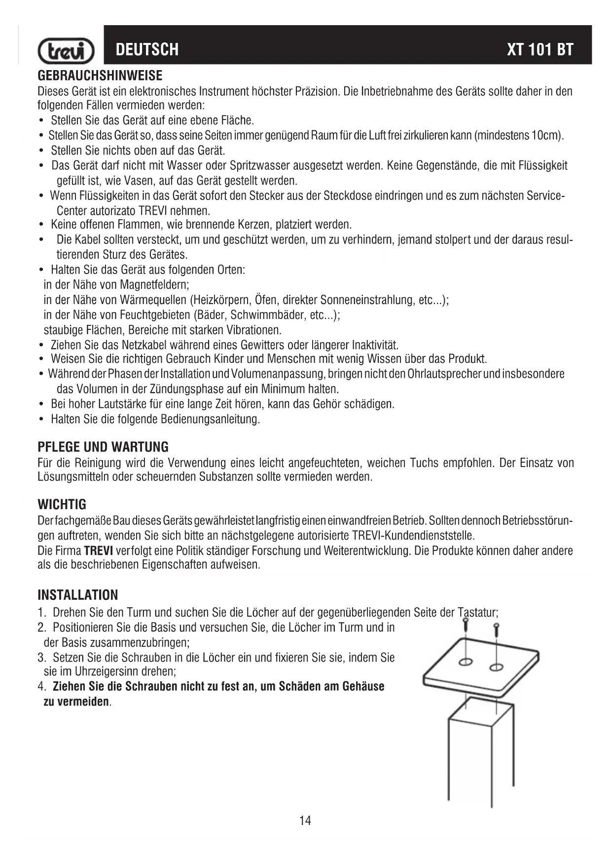 BEDIENUNGSANLEITUNG XT 101 BT Trevi