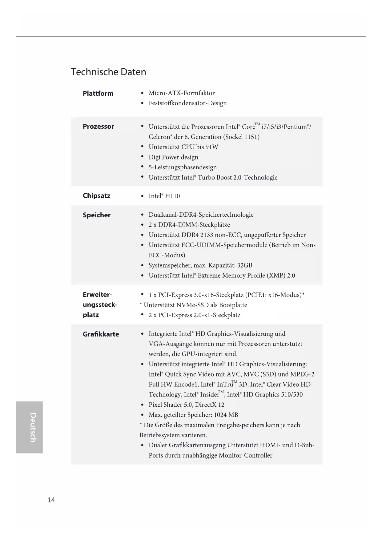 Intel® H110 Speicher