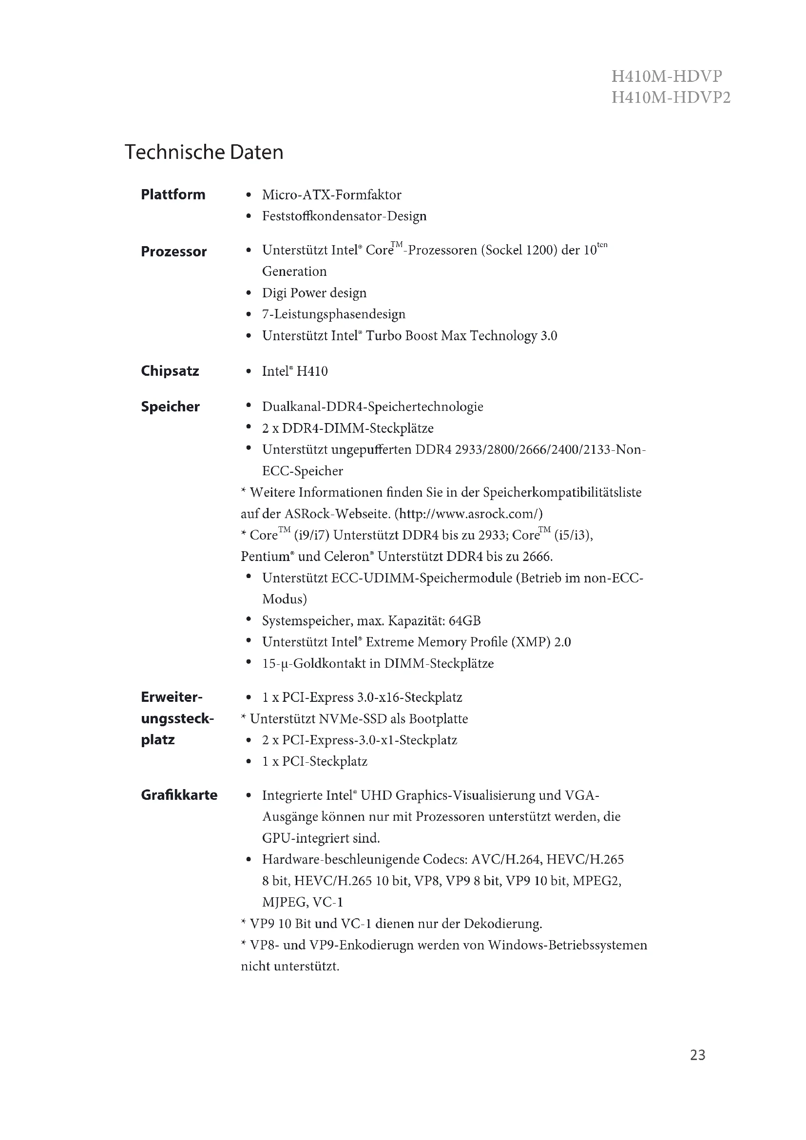 H410MHDVP - Motherboard ASROCK - Kostenlose Bedienungsanleitung