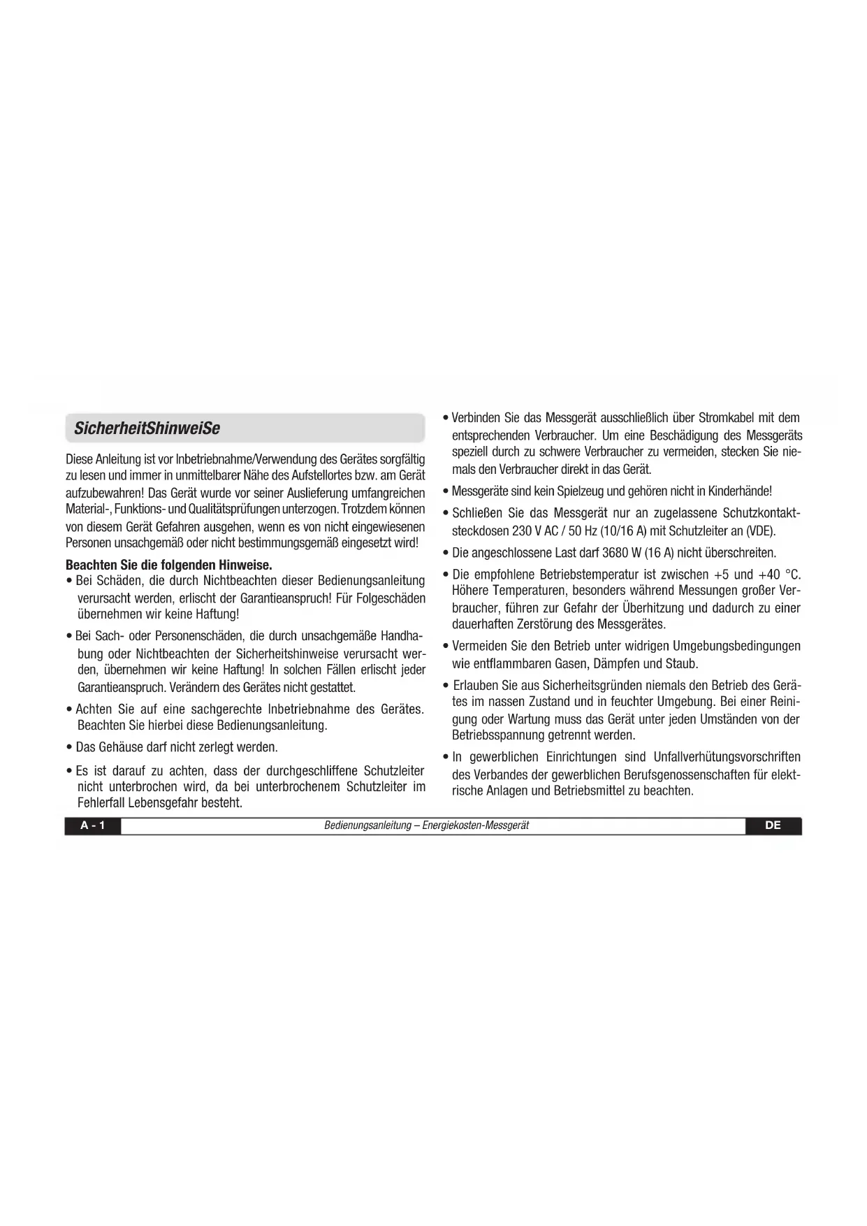 Bedienungsanleitung – Energiekosten-Messgerät A - 2