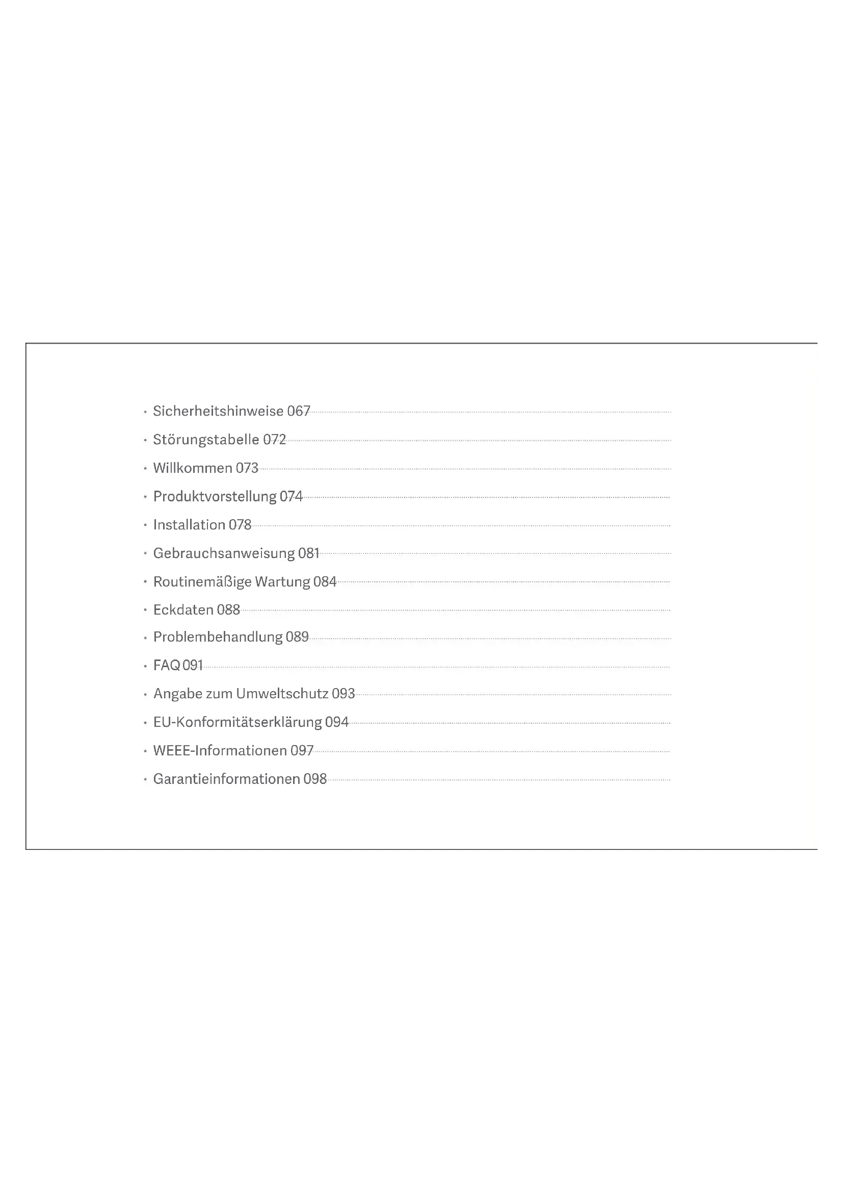 Technische Dokumentation zur Bewertung von Elektro- und Elektronikprodukten im Hinblick auf die Beschränkung der Verwendung gefährlicher Stoffe ROHS Directive 2011/65/EU EN50581:2012 Für diese Erklärung verantwortliche Person: Name in Druckbuchstaben: Rui.Shen Position/Titel: Quality Director Unterschri: Ausstellungsdatum: Aug 7, 2019 Ausstellungsort: Floor 6, Suite 6016, 6017, 6018, Building C, Kangjian Baosheng Plaza, No. 8 Heiquan Road, Haidian District, Peking, VR ChinaWEEE-Informationen Korrekte Entsorgung dieses Produkts. Innerhalb der EU weist dieses Symbol darauf hin, dass dieses Produkt nicht über den Hausmüll entsorgt werden darf. Altgeräte enthalten wertvolle recyclingfähige Materialien, die einer Wiederverwertung zugeführt werden sollten und um der Umwelt bzw. der menschlichen Gesundheit nicht durch unkontrollierte Müllbeseitigung zu schaden. Bie entsorgen Sie Altgeräte deshalb über geeignete Sammelsysteme oder senden Sie das Gerät zur Entsorgung an die Stelle, bei der Sie es gekau haben. Diese wird dann das Gerät der stofflichen Verwertung zuführen. 097Garantieinformationen