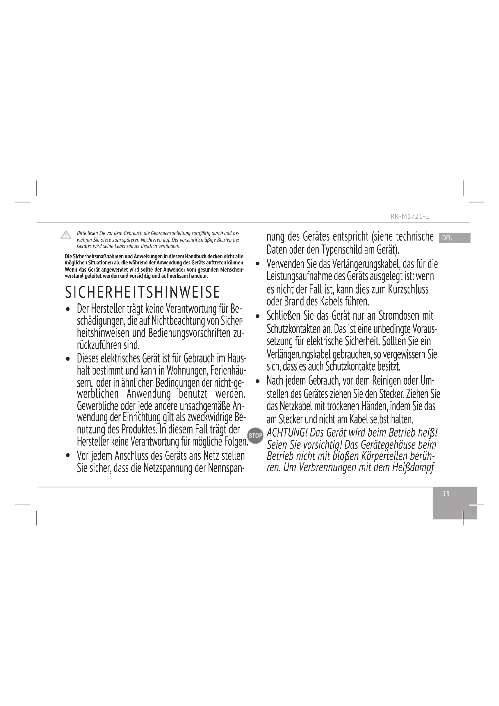 BEDIENUNGSANLEITUNG RKM1721E Redmond