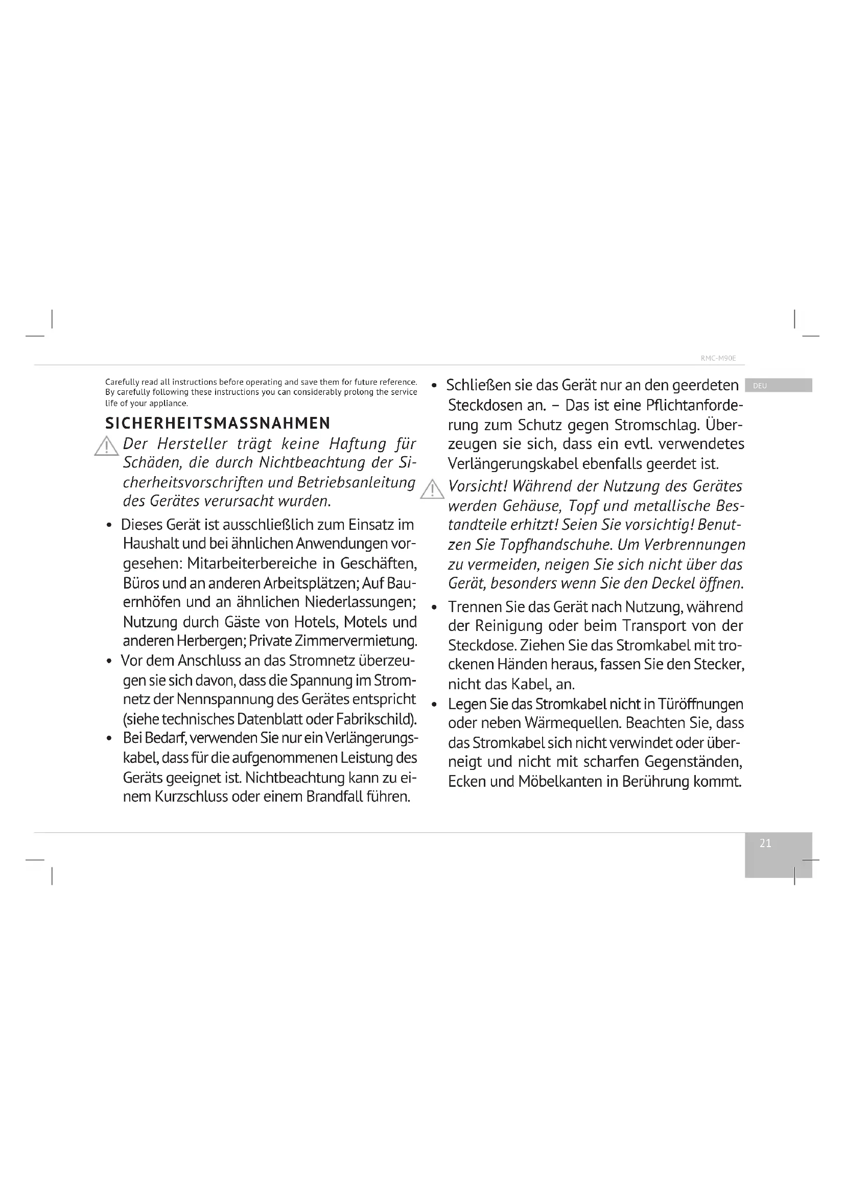 BEDIENUNGSANLEITUNG RMCM90DE Redmond