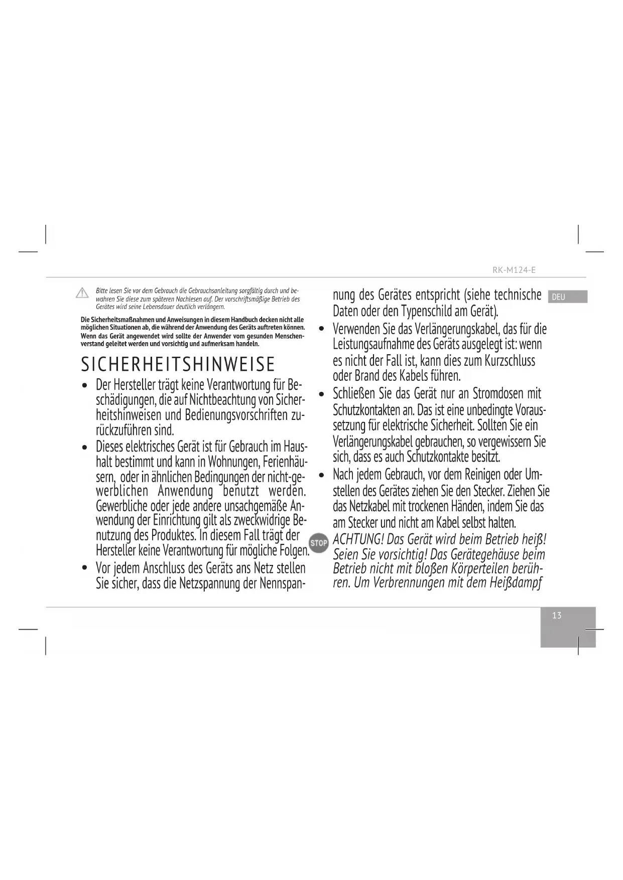 BEDIENUNGSANLEITUNG RKM124E Redmond