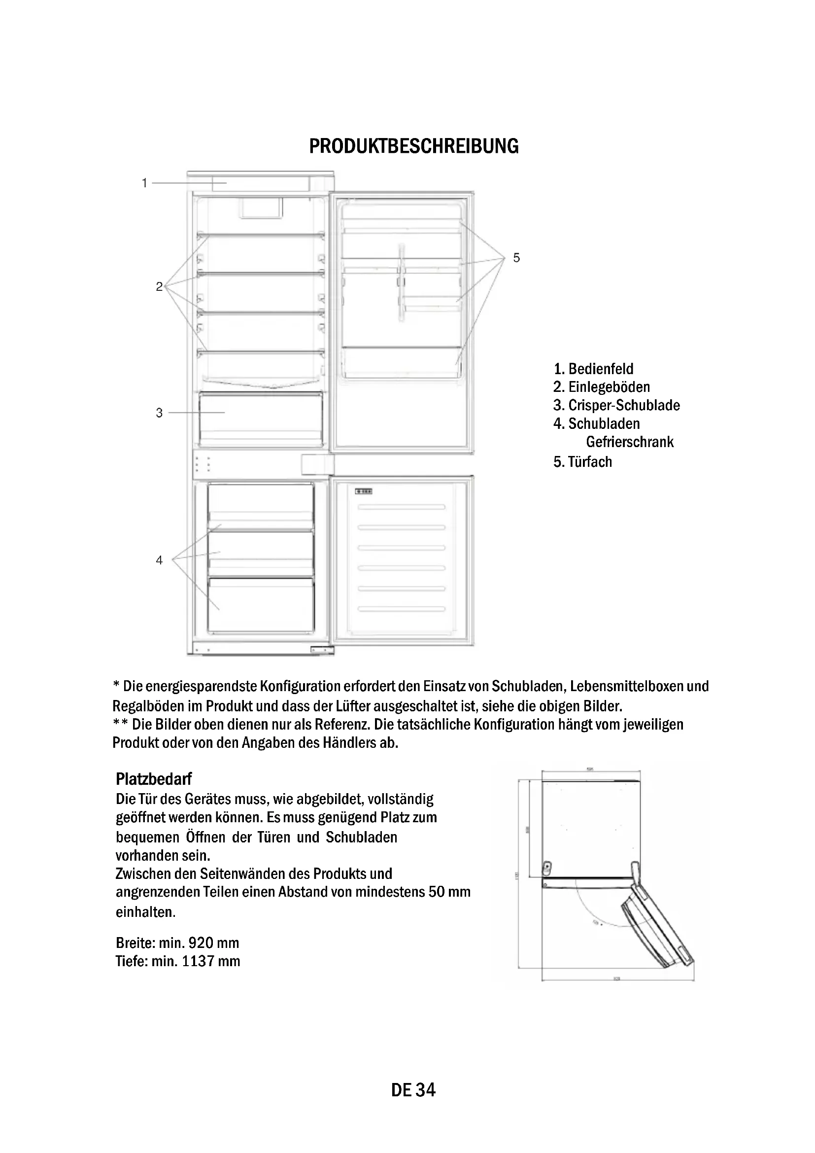 - Die energiesparendste Konfiguration erfordert den Einsatz von Schubladen, Lebensmittelboxen und Regalböden im Produkt und dass der Lüfter ausgeschaltet ist, siehe die obigen Bilder. ** Die Bilder oben dienen nur als Referenz. Die tatsächliche Konfiguration hängt vom jeweiligen Produkt oder von den Angaben des Händlers ab.