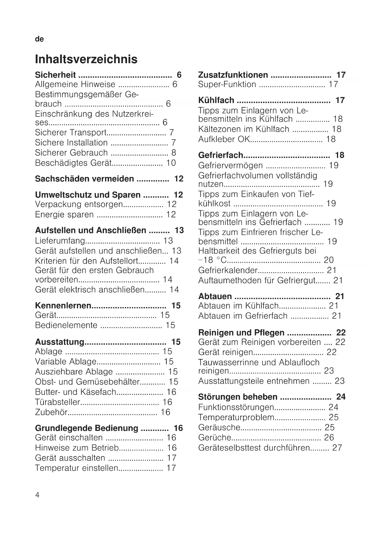 - Tipps zum Einlagern von Le- bensmitteln ins Gefrierfach p. 19