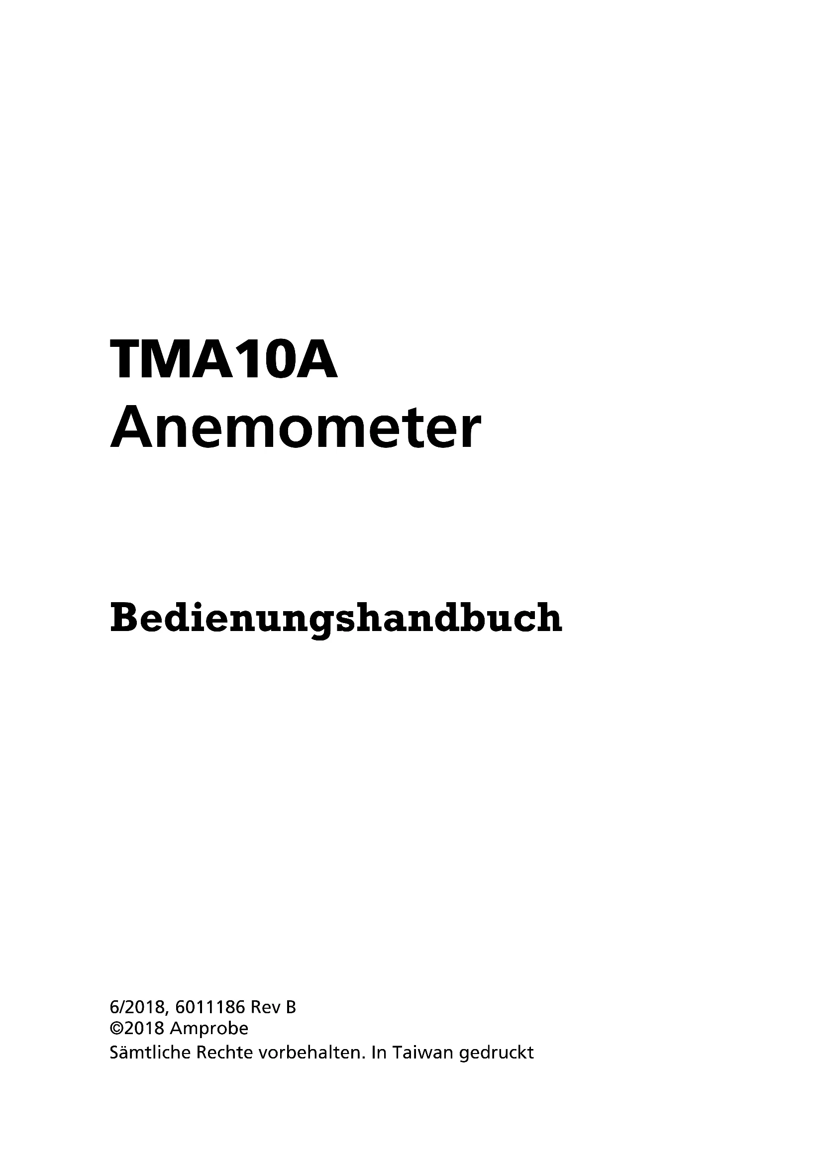 Température de l’air Gamme Résolution Précision 0 à 50 °C (32 à 122 °F) 0,1 °F/°C 0,8 °C (±1,5 °F)TMA10A Anemometer Bedienungshandbuch 6/2018, 6011186 Rev B ©2018 Amprobe Sämtliche Rechte vorbehalten. In Taiwan gedruckt DeutschEingeschränkte Garantie und Haftungseinschränkungen Innerhalb eines Jahres ab Kaufdatum oder innerhalb des gesetzlich vorgeschriebenen Mindestzeitraums garantieren wir, dass Ihr Amprobe-Produkt keinerlei Material- und Herstellungsfehler aufweist. Sicherungen, Trockenbatterien sowie Schäden durch Unfall, Fahrlässigkeit, Missbrauch, Manipulation, Kontamination sowie anomale Nutzung und Einsatzbedingungen werden nicht durch die Garantie abgedeckt. Händler sind nicht berechtigt, jegliche Erweiterungen der Garantie im Namen von Amprobe in Aussicht zu stellen. Um Serviceleistungen während der Garantiezeit in Anspruch zu nehmen, übergeben Sie das Produkt mitsamt Kaufbeleg einem autorisierten Amprobe-Servicecenter oder einem Amprobe- Händler oder -Distributor. Details dazu finden Sie im Reparatur-Abschnitt. Sämtliche Ansprüche Ihrerseits ergeben sich aus dieser Garantie. Sämtliche sonstigen Gewährleistungen oder Garantien, ob ausdrücklich, implizit oder satzungsgemäß, sowie Gewährleistungen der Eignung für einen bestimmten Zweck oder Handelstauglichkeit werden hiermit abgelehnt. Der Hersteller haftet nicht für spezielle, indirekte, beiläufige oder Folgeschäden sowie für Verluste, die auf andere Weise eintreten. In bestimmten Staaten oder Ländern sind Ausschlüsse oder Einschränkungen impliziter Gewährleistungen, beiläufiger oder Folgeschäden nicht zulässig; daher müssen diese Haftungseinschränkungen nicht zwingend auf Sie zutreffen. Reparatur Sämtliche innerhalb oder außerhalb der Garantiezeit zur Reparatur oder Kalibrierung eingereichten Geräte (Amprobe) sollten mit folgenden Angaben begleitet werden:Ihr Name, Name Ihres Unternehmens, Anschrift, Telefonnummer und Kaufbeleg. Zusätzlich fügen Sie bitte eine Kurzbeschreibung des Problems oder der gewünschten Dienstleistung bei, vergessen Sie auch die Messleitungen des Gerätes nicht. Gebühren für Reparaturen oder Austausch außerhalb der Garantiezeit sollten per Scheck, Überweisung, Kreditkarte (mit Angabe des Ablaufdatums) oder per Auftrag zugunsten Amprobe beglichen werden. Reparatur und Austausch innerhalb der Garantiezeit – Alle Länder Bitte lesen Sie die Garantiebedingungen, prüfen Sie den Zustand der Batterie, bevor Sie Reparaturleistungen in Anspruch nehmen. Innerhalb der Garantiezeit können sämtliche defekten Prüfwerkzeuge zum Austausch gegen ein gleiches oder gleichartiges Produkt an Ihren Amprobe- Distributor zurückgegeben werden. Eine Liste mit Distributoren in Ihrer Nähe finden Sie im Bereich Vertriebspartner unter amprobe.com. In den USA und in Kanada können Geräte zum Austausch oder zur Reparatur auch an das Amprobe-Servicecenter (Anschrift weiter unten) eingesandt werden.Reparatur und Austausch außerhalb der Garantiezeit – USA und Kanada Außerhalb der Garantiezeit sollten Geräte in den USA und in Kanada zur Reparatur an ein Amprobe-Servicecenter gesandt werden. Informationen zu aktuellen Reparatur- und Austauschgebühren erhalten Sie von Ihrem Händler oder telefonisch von Amprobe. USA: Kanada: Amprobe Amprobe Everett, WA 98203 Mississauga, ON L4Z 1X9 Tel.: 877-AMPROBE (267-7623) Tel.: 905-890-7600 Reparatur und Austausch außerhalb der Garantiezeit – Europa In Europa können Geräte außerhalb der Garantiezeit gegen eine geringe Gebühr von Ihrem Beha-Amprobe-Distributor ausgetauscht werden. Eine Liste mit Distributoren in Ihrer Nähe finden Sie im Bereich Vertriebspartner unter beha-amprobe.com. Beha-Amprobe Bereich und registrierte Marke von Fluke Corp. (USA) Deutschland Vereinigtes Königreich In den Engematten 14 52 Hurricane Way 79286 Glottertal Norwich, Norfolk Deutschland NR6 6JB Vereinigtes Telefon: +49 (0) 7684 8009 - 0 Königreich beha-amprobe.de Phone: +44 (0) 1603 25 6662 beha-amprobe.com Niederlande – Hauptsitz Science Park Eindhoven 5110 5692 EC Son The Netherlands Telefon: +31 (0) 40 267 51 00 beha-amprobe.com1 TMA10A Anemometer/Thermometer Inhalt