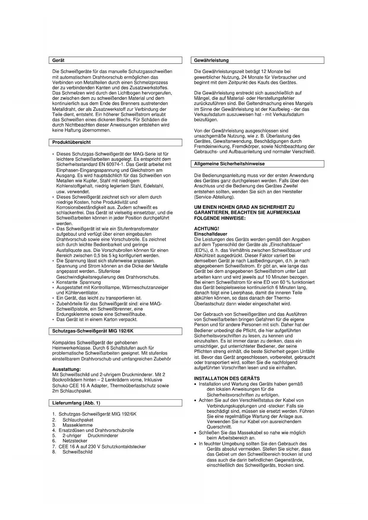 1. Schutzgas-Schweißgerät MIG 192/6K