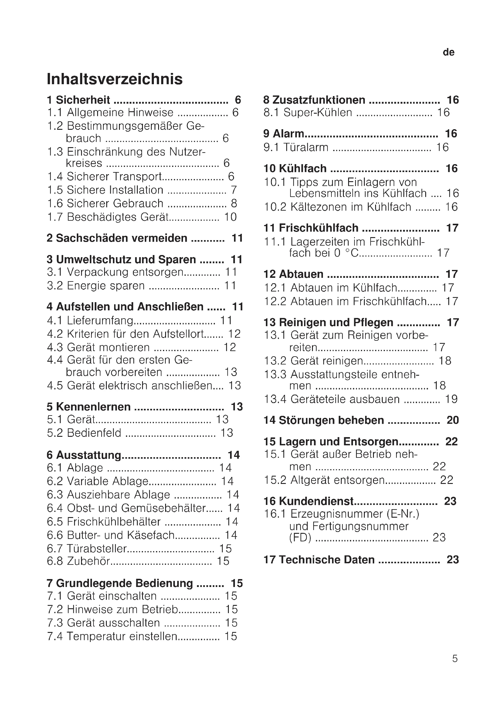 12.2 Abtauen im Frischkühlfach.....17