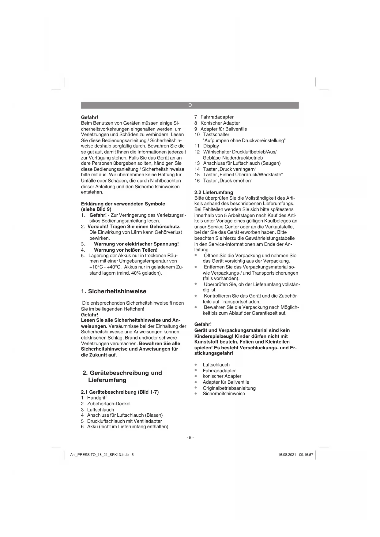 D Originalbetriebsanleitung Akku-Kompressor