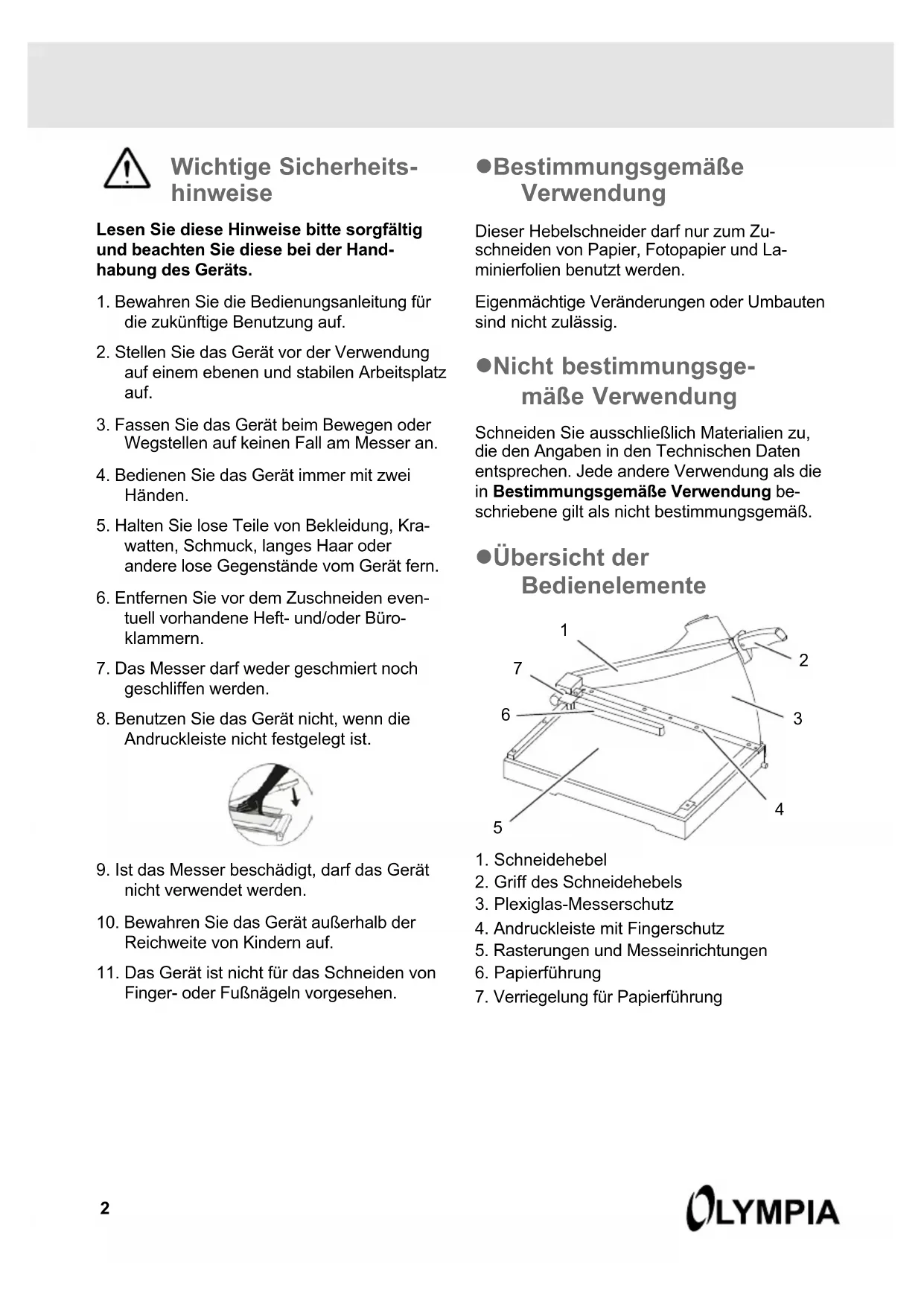 G 4420 - Papierschneider OLYMPIA - Kostenlose Bedienungsanleitung