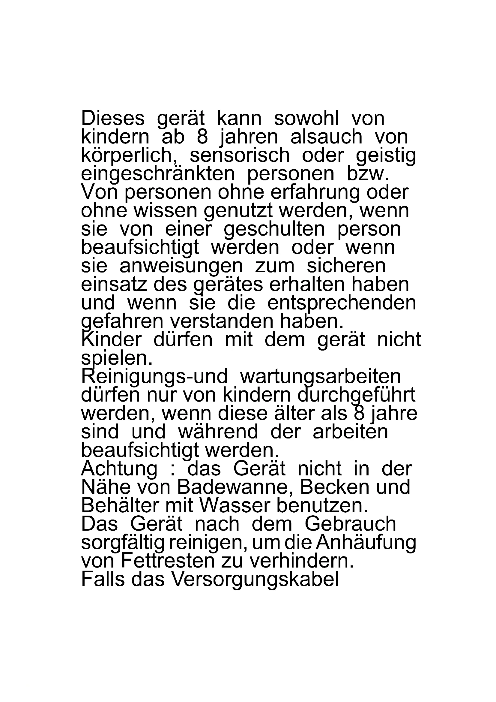 ACHTUNG : lesen Sie die in diesem Heftchen stehenden Anweisungen sorgfältig. Sie geben ihnen nützliche Hinweise hinsichtlich der Sicherheit des Gerätes, der Anwendung und der Instandhaltung. Wichtige Hinweise bitte aufbewahren für späteres Nachlesen. Garantiebescheinigung, skalische Quittung und Bedienungsanleitung für jede spätere Konsultation bitte aufbewahren. Nach Entfernen der Verpackung vergewissere man sich der Integrität des Gerätes und sollte man bei dieser Überprüfung sichtbare Beschädigungen festestellen, das Gerät nicht benutzen und sich direkt an qualiziertes Fachpersonal wenden. Keinerlei Verpackungsteile für Kinder zugänglich zurücklassen, das beschädigt ist, dann darf dieses nur durch einen, vom Hersteller g e n e h m i g t e n , K u n d e n d i e n s t ausgetauscht werden, um jegliches Risiko vorzubeugen. Das Gerät wurde für den Betrieb in Wohnbereichen als gesichts-sauna inhaliergerät gebaut und konzipiert; deshalb ist jeder andersartige Gebrauch als unsachgemäß und daher gefährlich zu betrachten.
