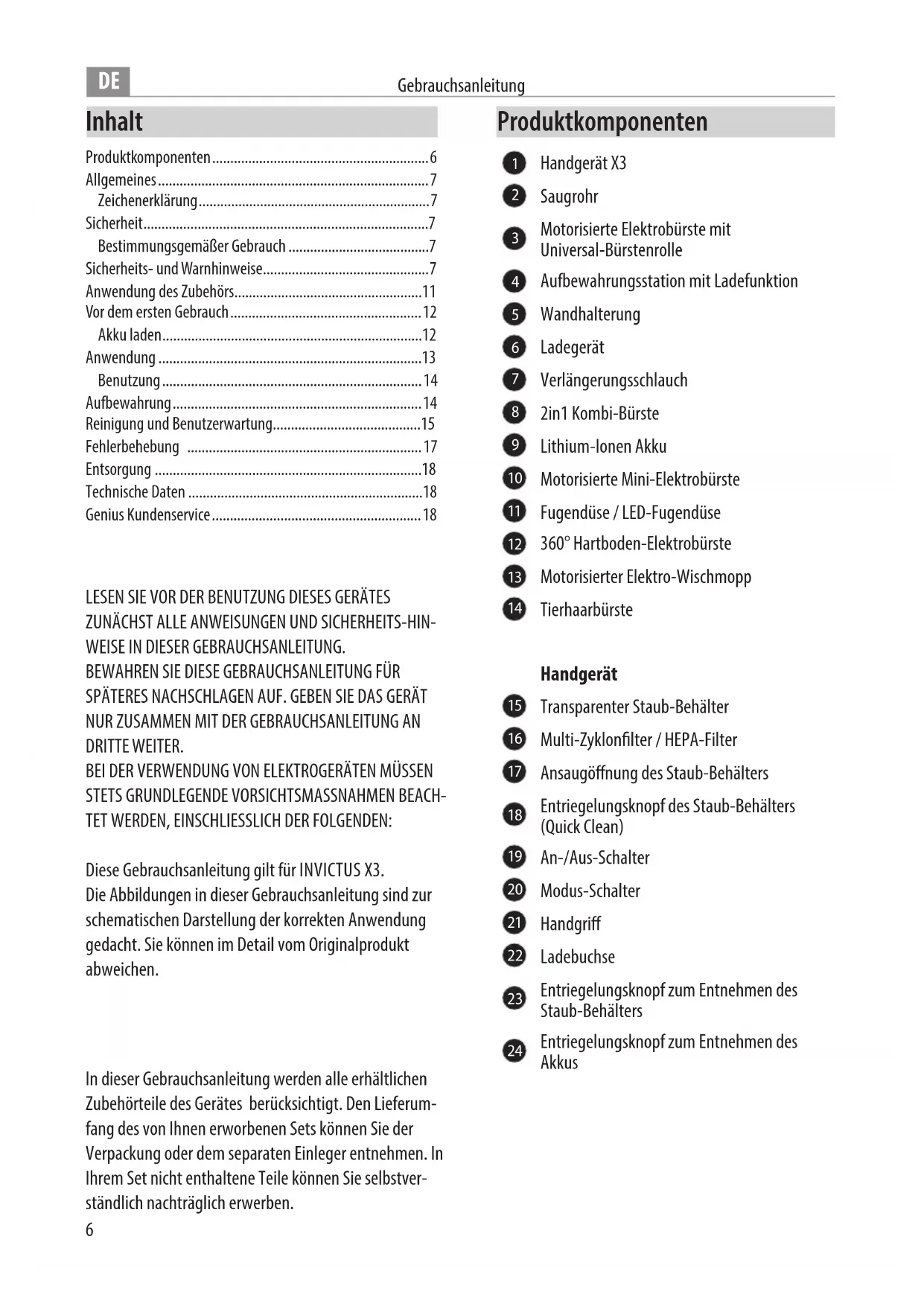 - Genius Kundenservice LESEN SIE VOR DER BENUTZUNG DIESES GERÄTES p. 18