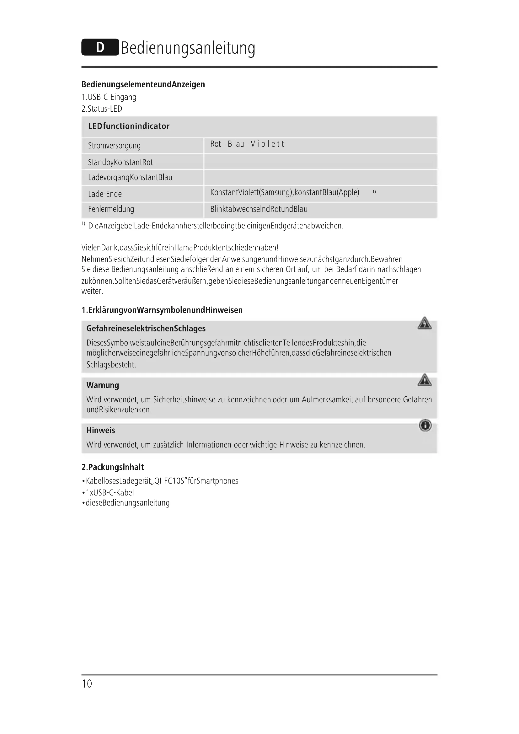 Die Anzeige bei Lade-Ende kann herstellerbedingt bei einigen Endgeräten abweichen. Vielen Dank, dass Sie sich für ein Hama Produkt entschieden haben! Nehmen Sie sich Zeit und lesen Sie die folgenden Anweisungen und Hinweise zunächst ganz durch. Bewahren Sie diese Bedienungsanleitung anschließend an einem sicheren Ort auf,umbei Bedarf darin nachschlagen zu können. Sollten Sie das Gerät veräußern, geben Sie diese Bedienungsanleitung an den neuen Eigentümer weiter.