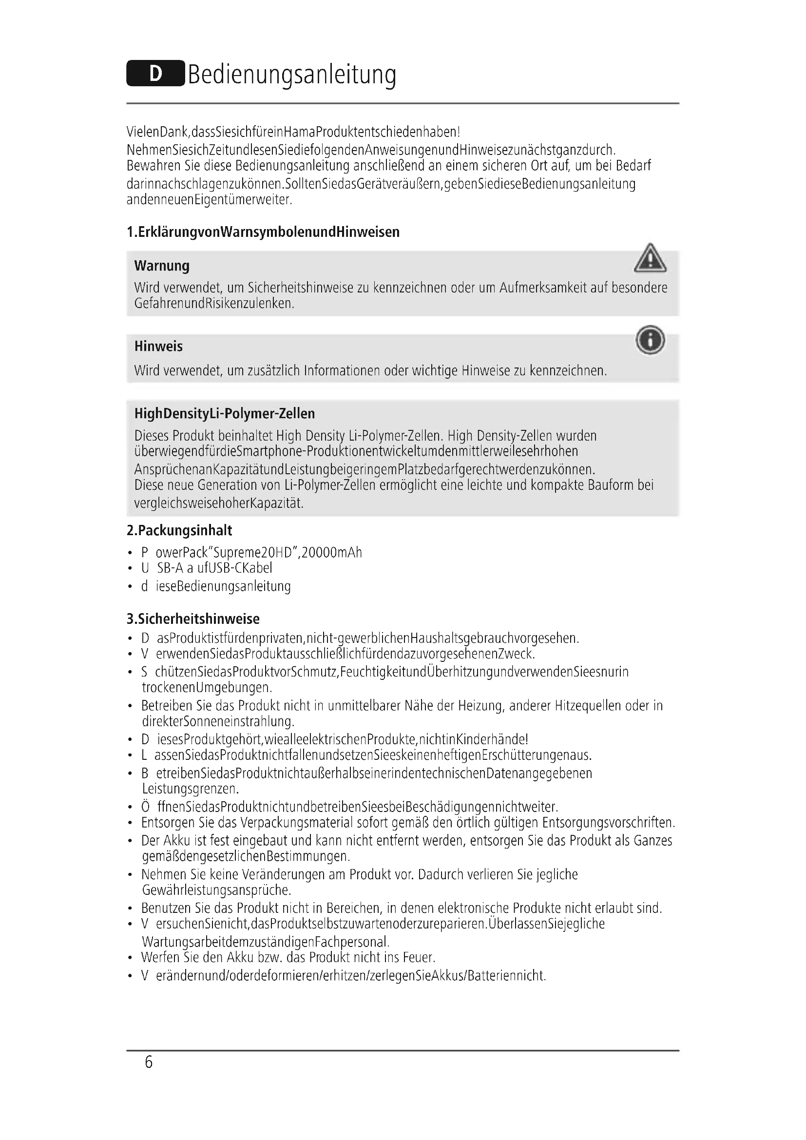 Supreme 20HD 00187292 - Tragbarer Akku HAMA - Kostenlose Bedienungsanleitung