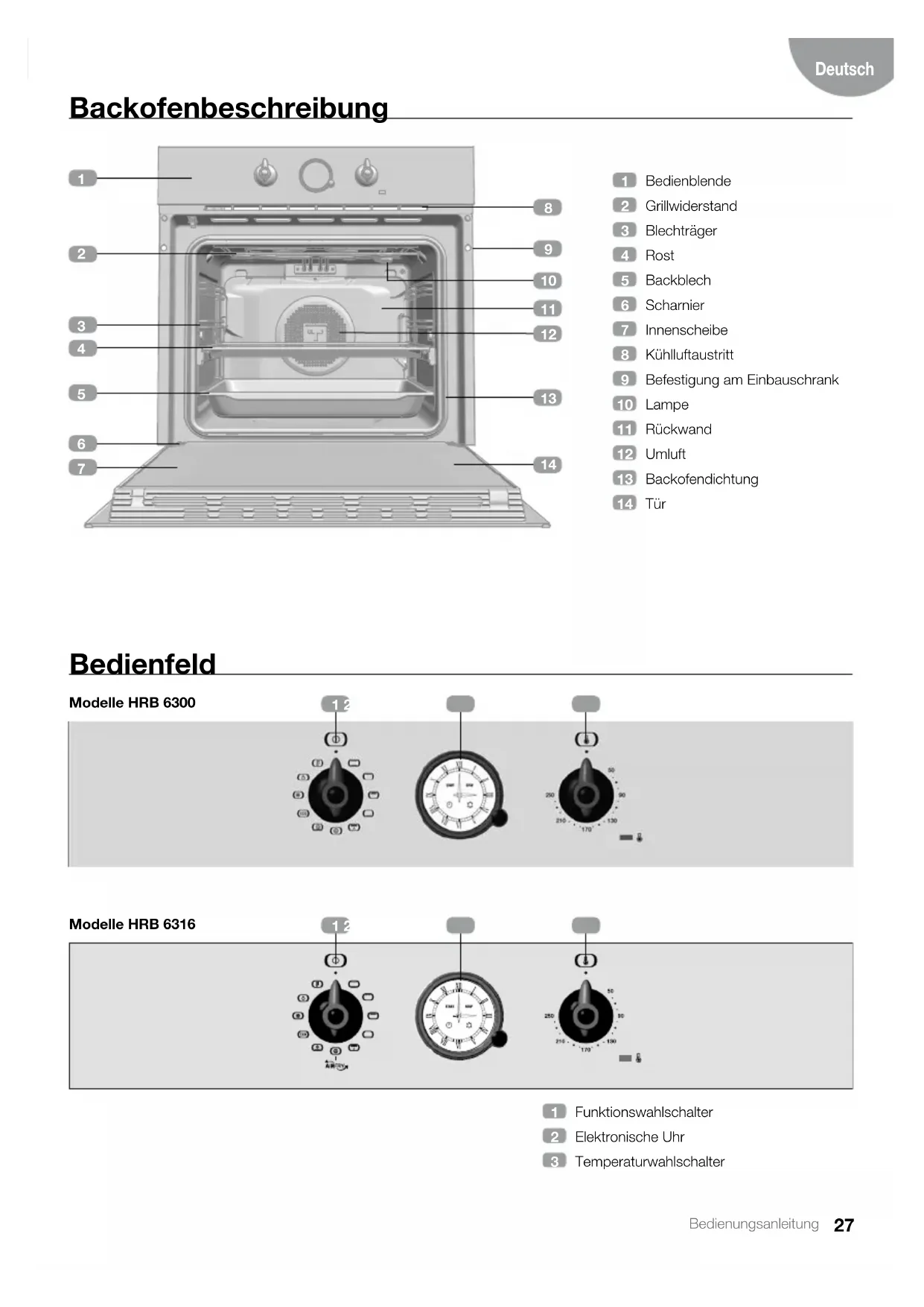 té inférieure du four.27 Bedienungsanleitung Deutsch Backofenbeschreibung Bedienfeld