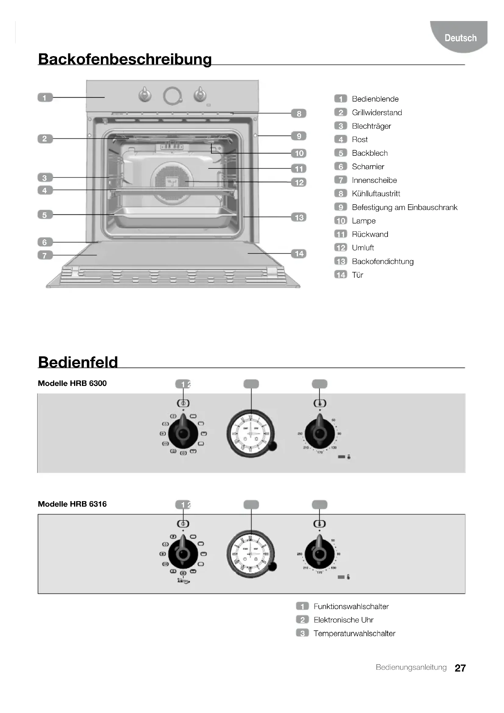 té inférieure du four.27 Bedienungsanleitung Deutsch Backofenbeschreibung Bedienfeld