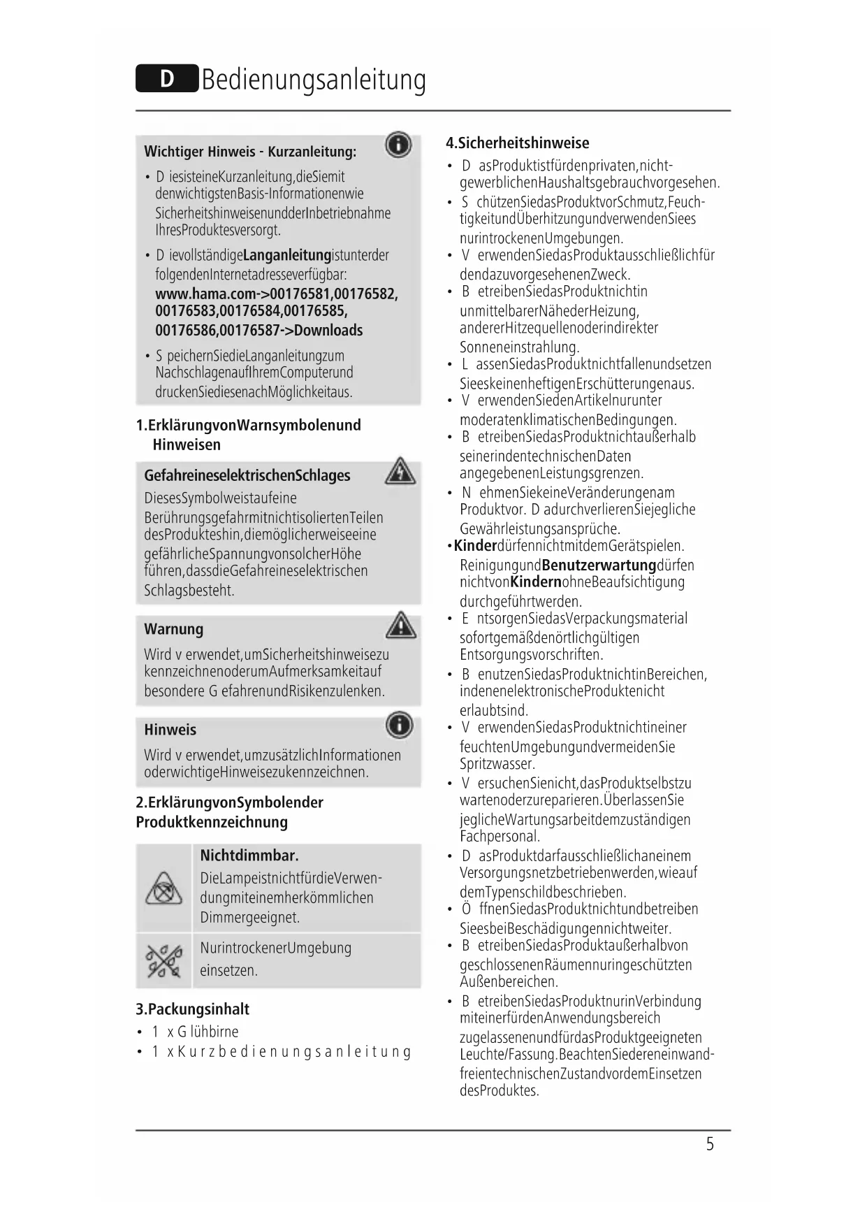 BEDIENUNGSANLEITUNG 00176583 HAMA
