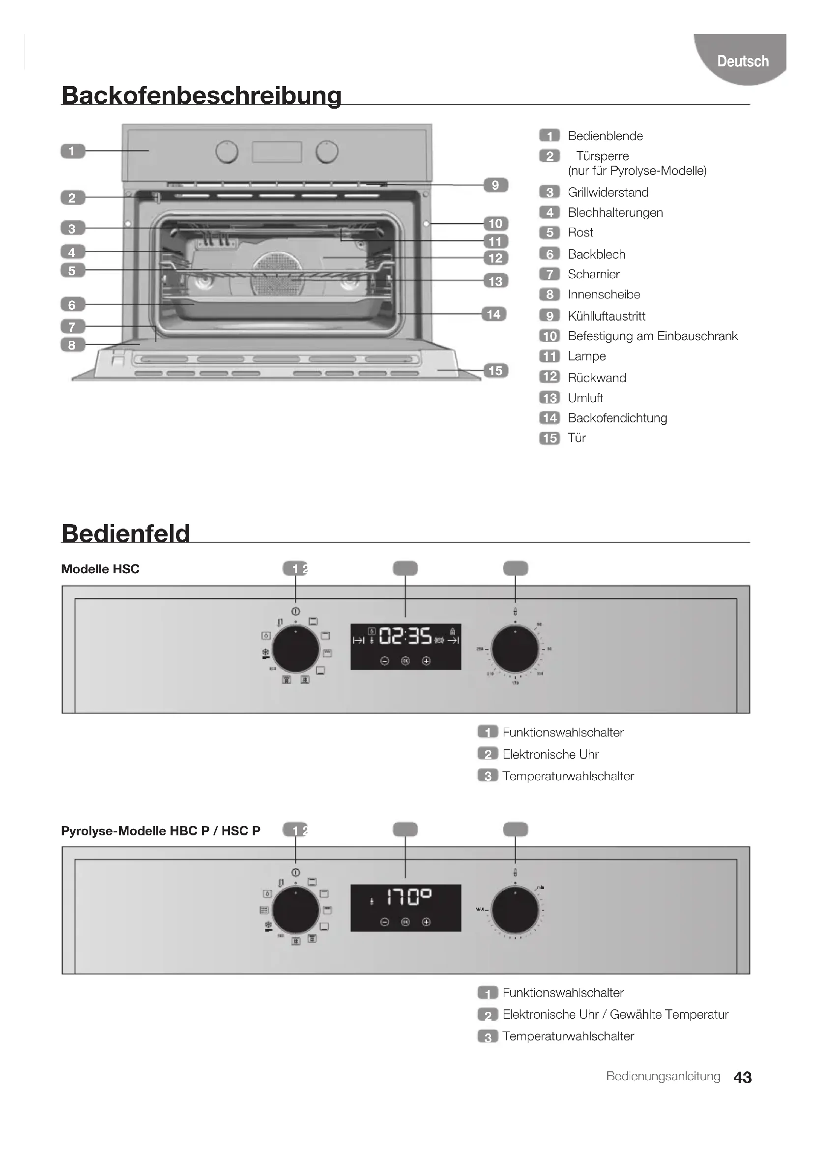 Pyrolyse-Modelle HBC P / HSC P44 Bedienungsanleitung Funktionswahlschaltersymbole Modell HSC 635 Modelle HBC 625 P, HSC 635 P Backofenfunktionen