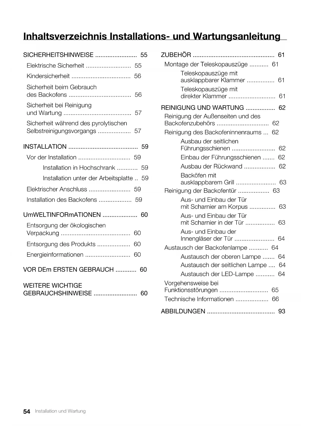 - AbbIlDUNGEN Installation und Wartung Deutsch SICHERHEITSHINWEISE Lesen Sie die vorliegende Bedienungsanleitung aufmerksam durch, um eine optimale Leistung Ihres Backofens auf ord- nungsgemäße und sichere Art und Weise sicherzustellen. Be- wahren Sie diese Anleitung auf, damit sie ein neuer Besitzer lesen kann. Elektrische Sicherheit p. 9355