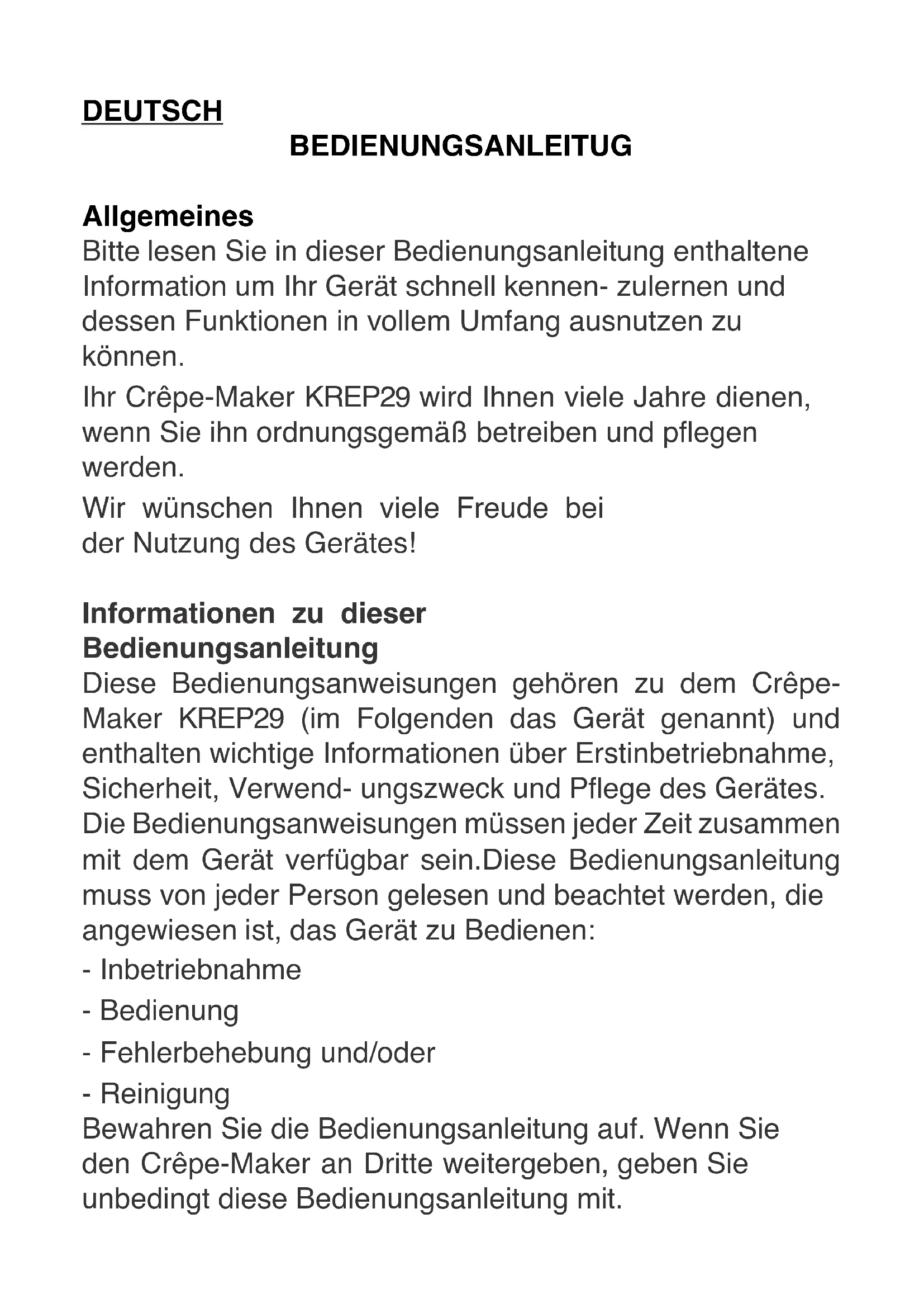 BEDIENUNGSANLEITUNG KREP29 H.KOENIG