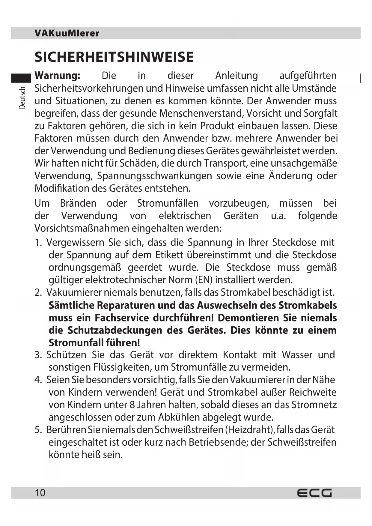VS 110 B10 - Vakuumverpackungsmaschinen ECG - Kostenlose Bedienungsanleitung