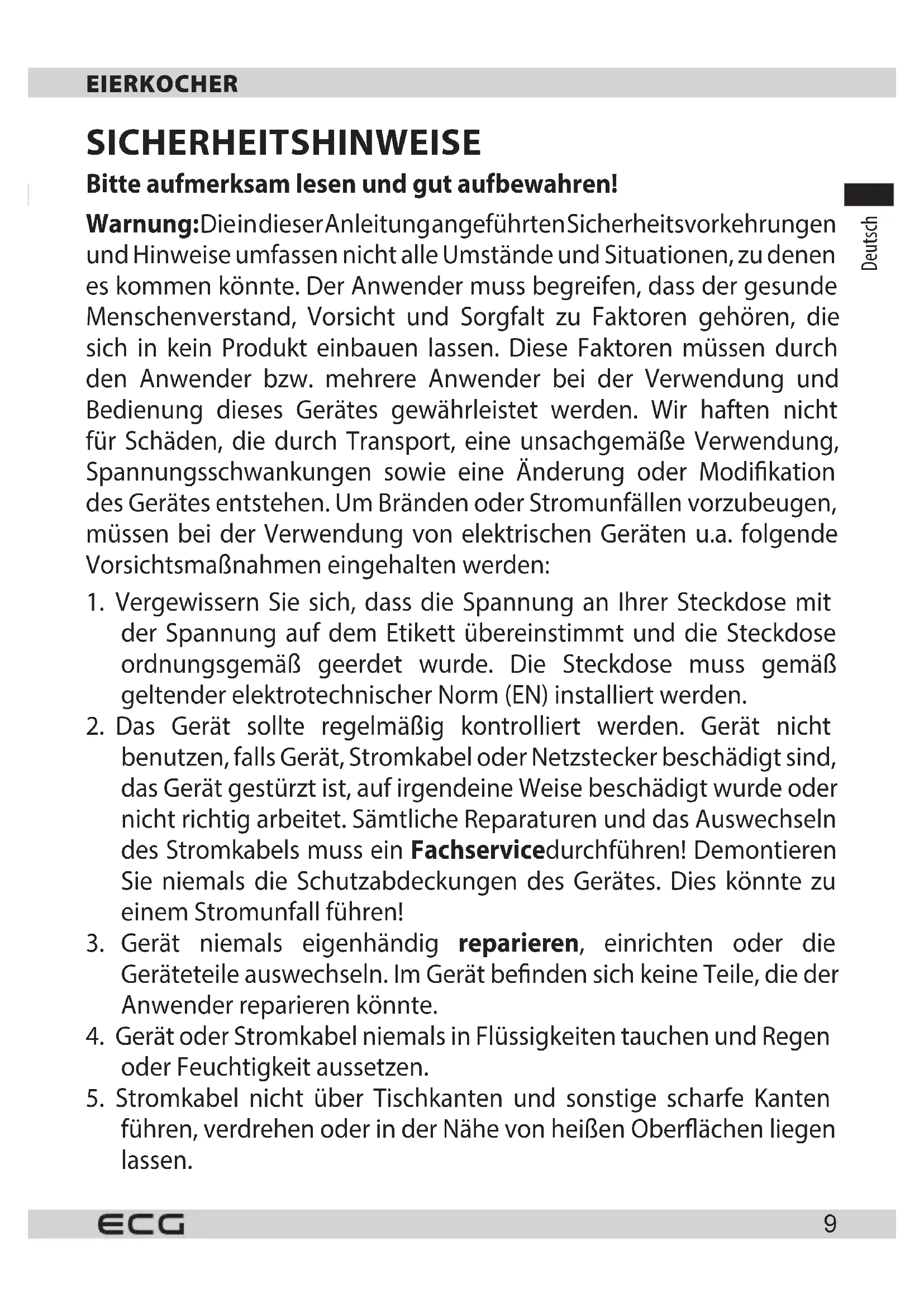 UV 5080 - Eierkocher ECG - Kostenlose Bedienungsanleitung