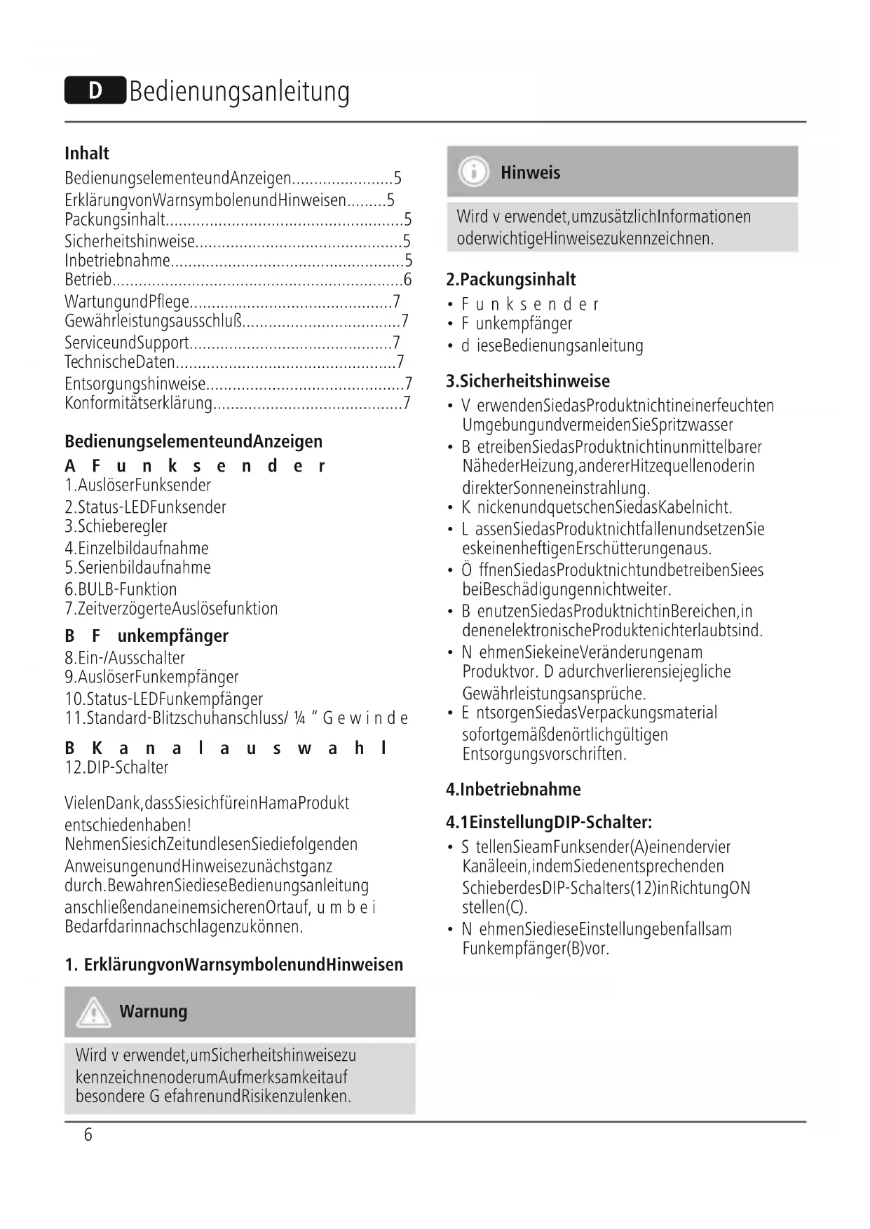 Erklärung von Warnsymbolen und Hinweisen Warnung Wirdverwendet, um Sicherheitshinweise zu kennzeichnen oder um Aufmerksamkeit auf besondereGefahren und Risiken zu lenken. Hinweis Wirdverwendet, um zusätzlich Informationen oder wichtige Hinweise zu kennzeichnen.