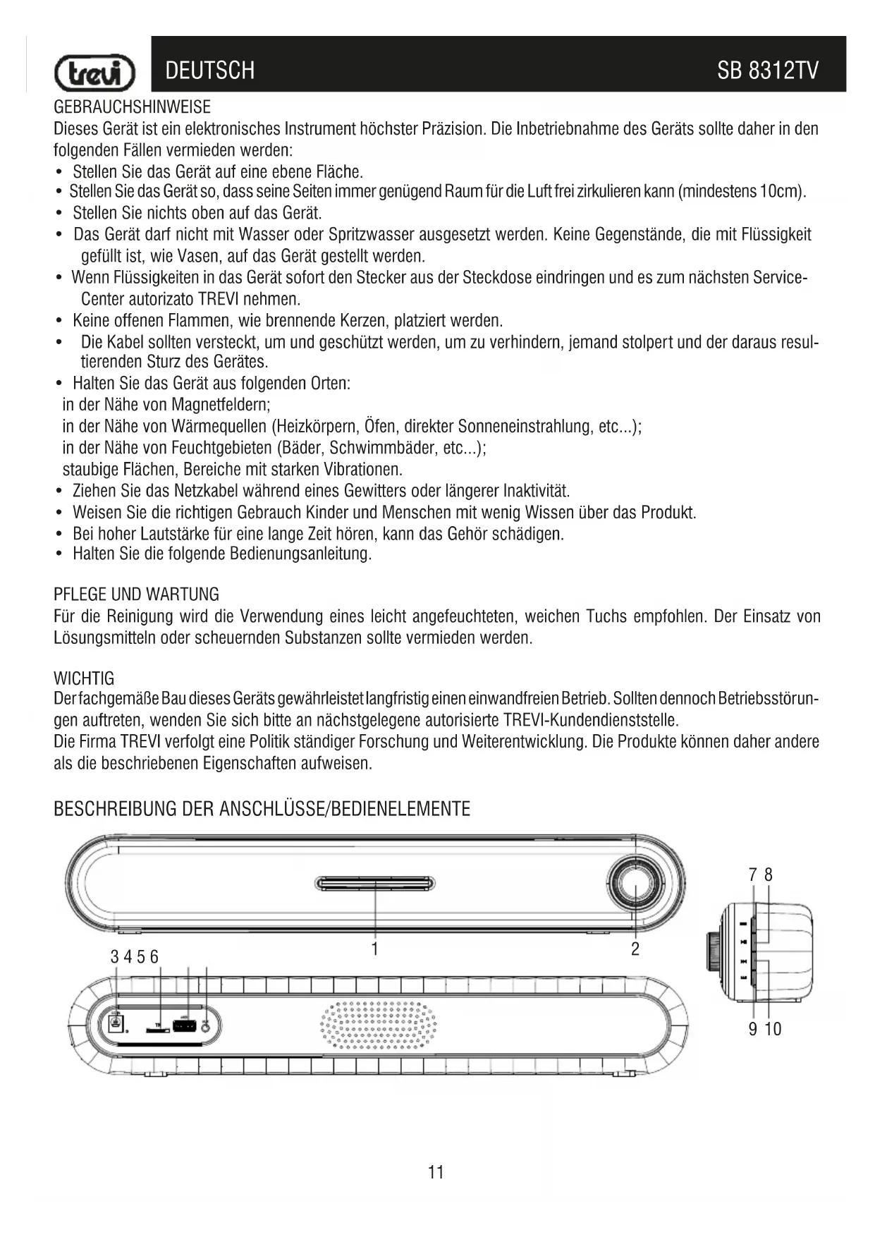 BEDIENUNGSANLEITUNG SB 8312 TV Trevi