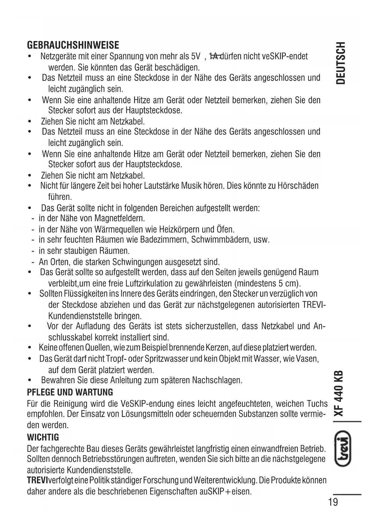BEDIENUNGSANLEITUNG XF 440 KB Trevi