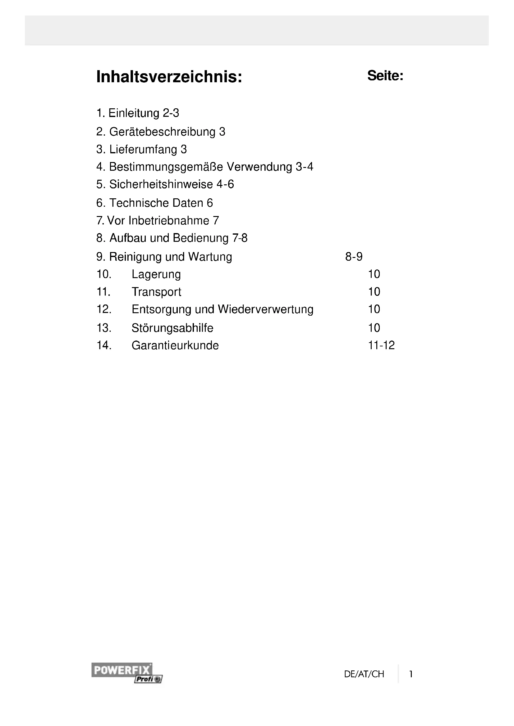 Störung Ursache Abhilfe Traglast kann nicht angehoben werden Traglast zu schwer Bremssystem defekt Kundendienst / Seviccenter Reparaturen Verwenden Sie nur vom Hersteller empfohlene Zubehör- und Ersatzteile. Sollte das Gerät trotz unserer Qualitätskontrollen und Ihrer Pege einmal ausfallen, lassen Sie Reparaturen nur von einem autorisierten Fachmann ausführen. Entsorgung Beim Entsorgen der Maschine müssen die örtlichen gesetzlichen Bestimmungen eingehalten werden.11 DE/AT/CH