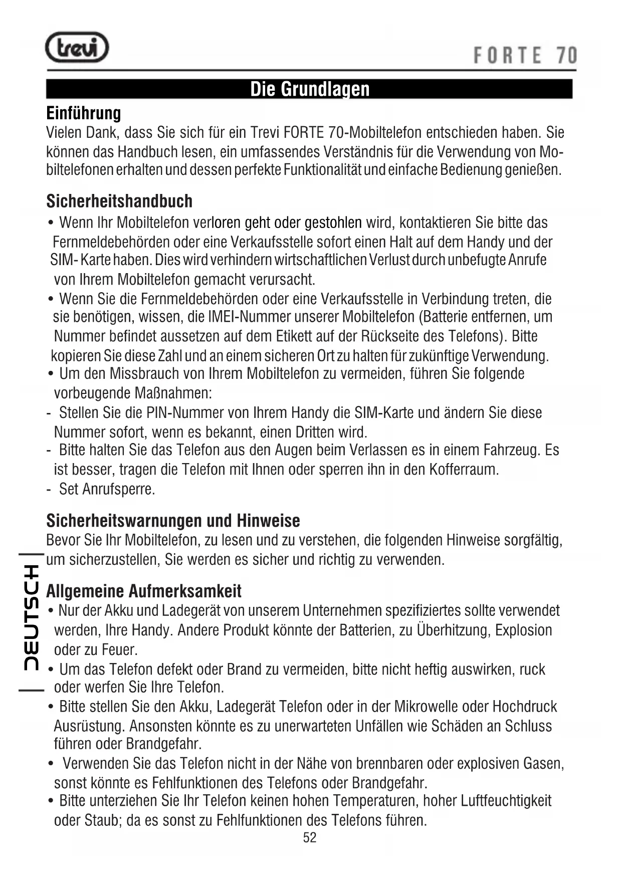 BEDIENUNGSANLEITUNG FORTE 70 Trevi