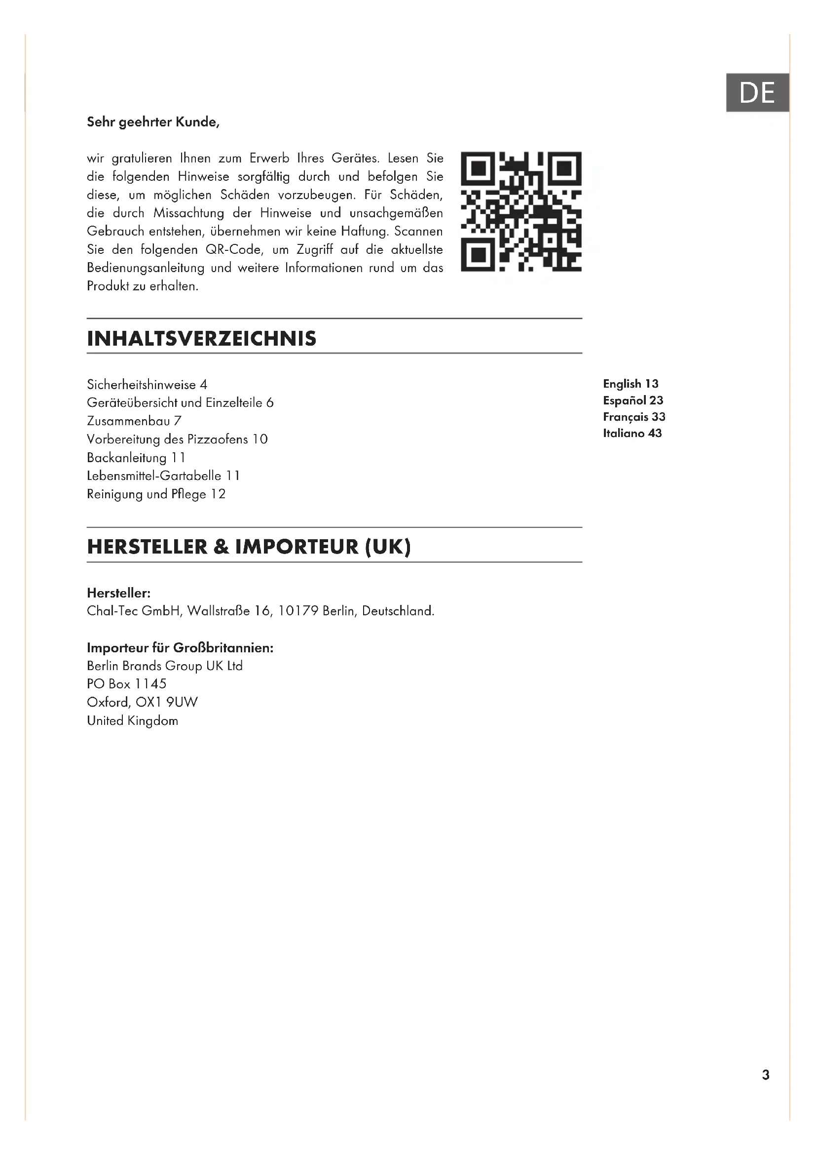 Diavolo - Pizzaofen Klarstein - Kostenlose Bedienungsanleitung