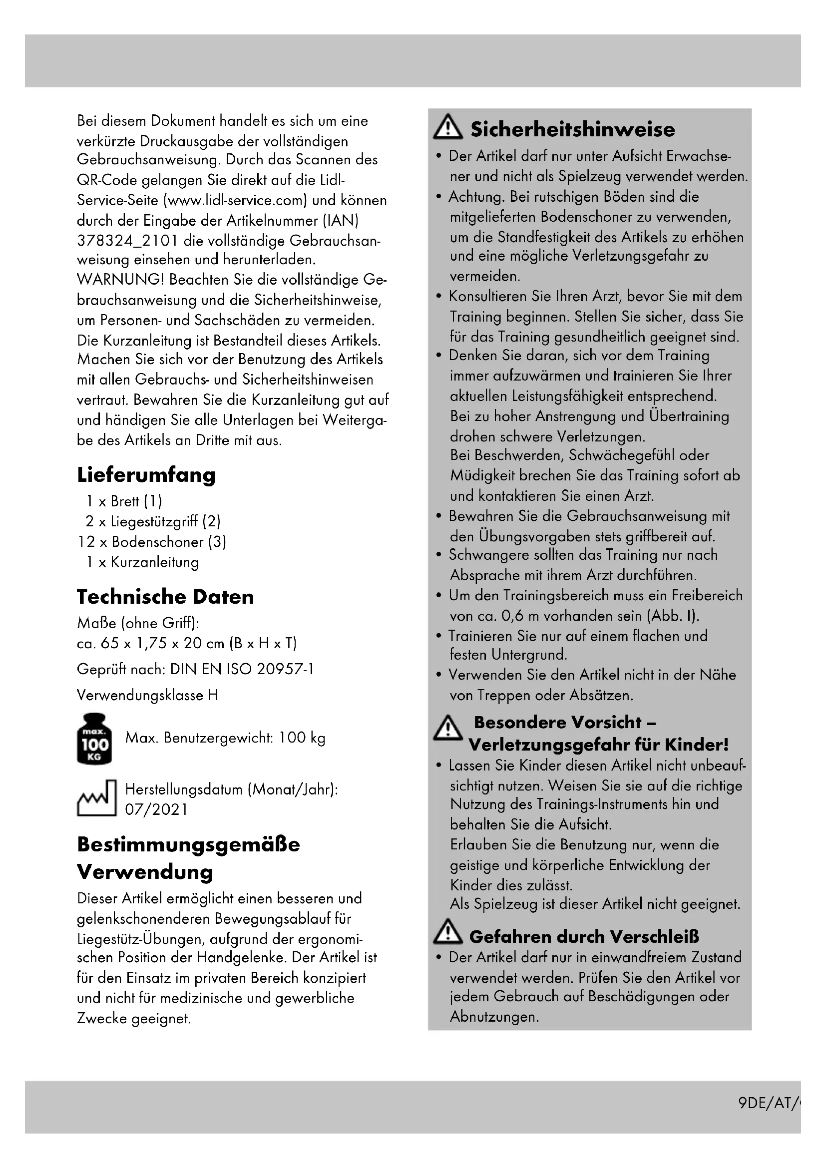 - Lassen Sie Kinder diesen Artikel nicht unbeauf- sichtigt nutzen. Weisen Sie sie auf die richtige Nutzung des Trainings-Instruments hin und behalten Sie die Aufsicht. Erlauben Sie die Benutzung nur, wenn die geistige und körperliche Entwicklung der Kinder dies zulässt. Als Spielzeug ist dieser Artikel nicht geeignet. Gefahren durch Verschleiß