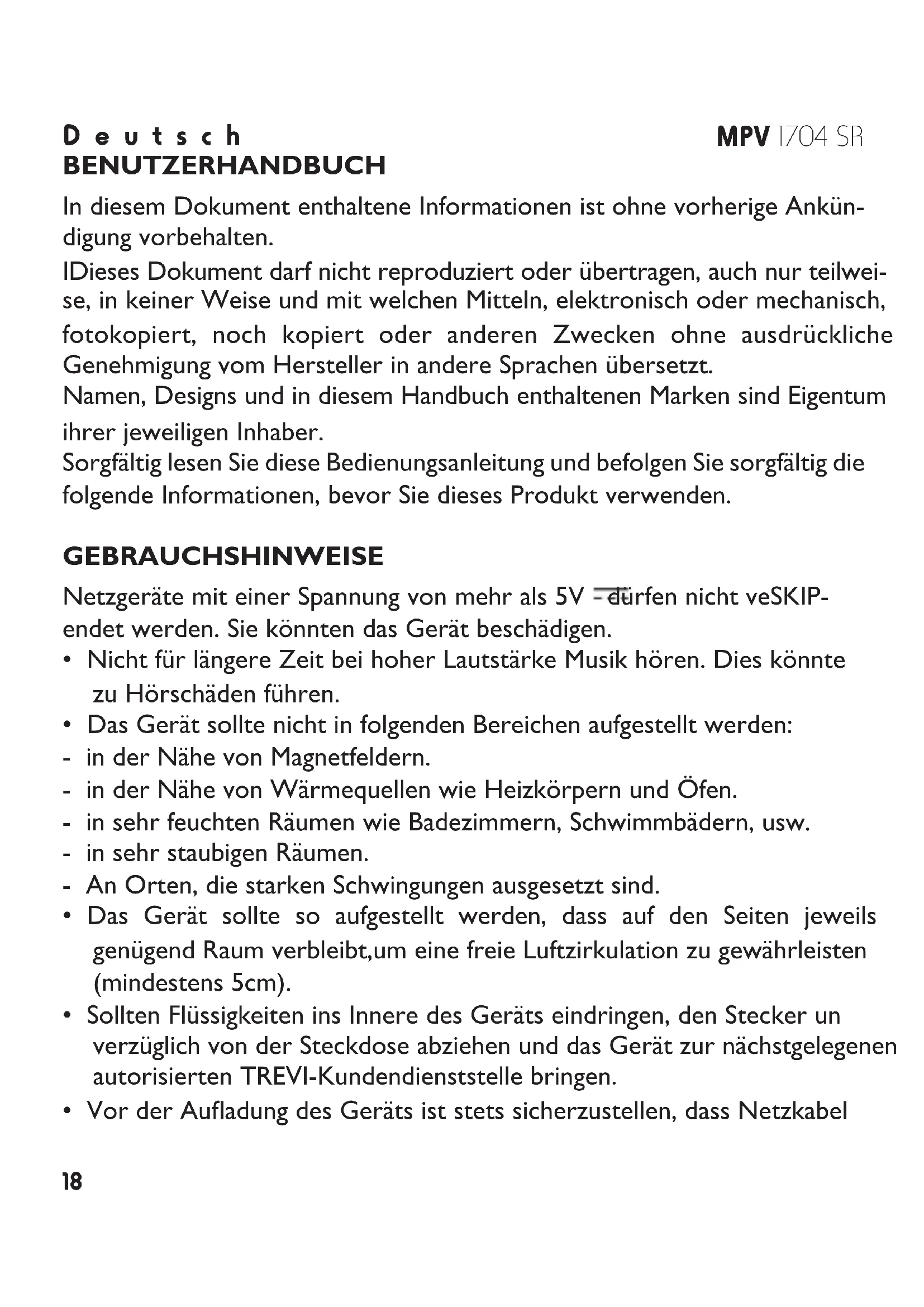MPV 1704 SR - Mp3-player Trevi - Kostenlose Bedienungsanleitung