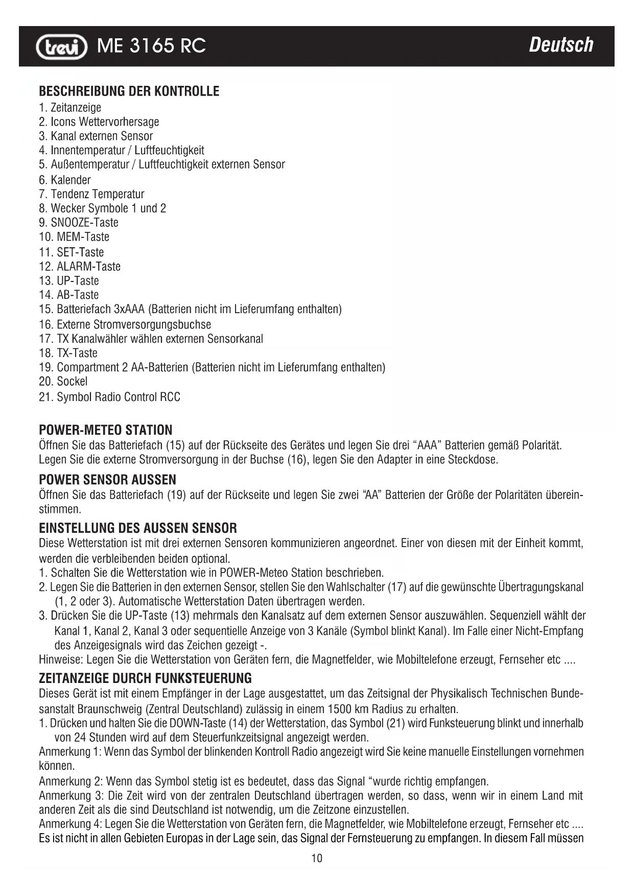 ME 3165 RC - Wetterstation Trevi - Kostenlose Bedienungsanleitung