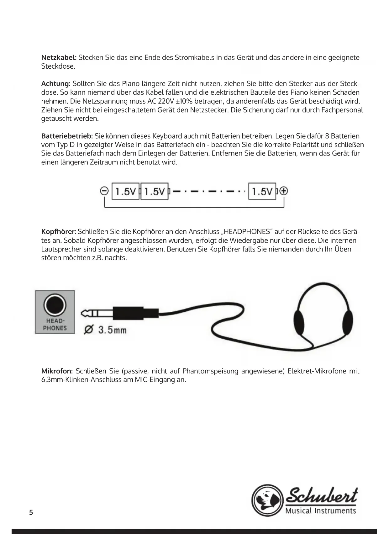 - 1x 6,3mm Kopfhörer Stromversorgung DC 9 V, 500mA Netzteil (mitgeliefert) oder 8 x 1,5V Batterien (nicht mitgeliefert) Maße 1008 x 431 x 171mm Gewicht ca 5,4kg Lieferumfang Gerät, Notenhalter, Bedienungsanleitung, Netzteil Erster Gebrauch